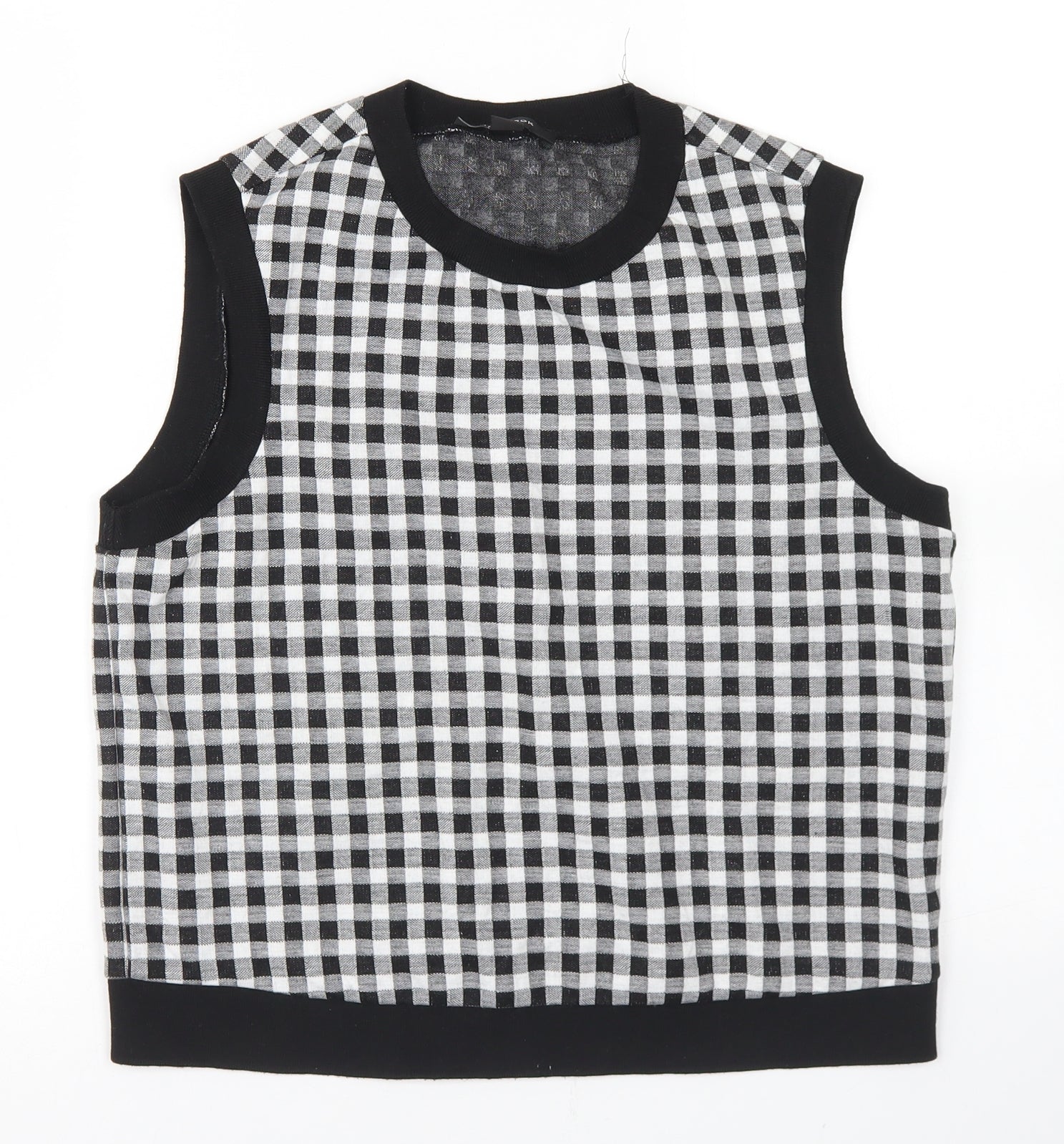Womens Black Crew Neck Check Polyester Vest Jumper Size 14