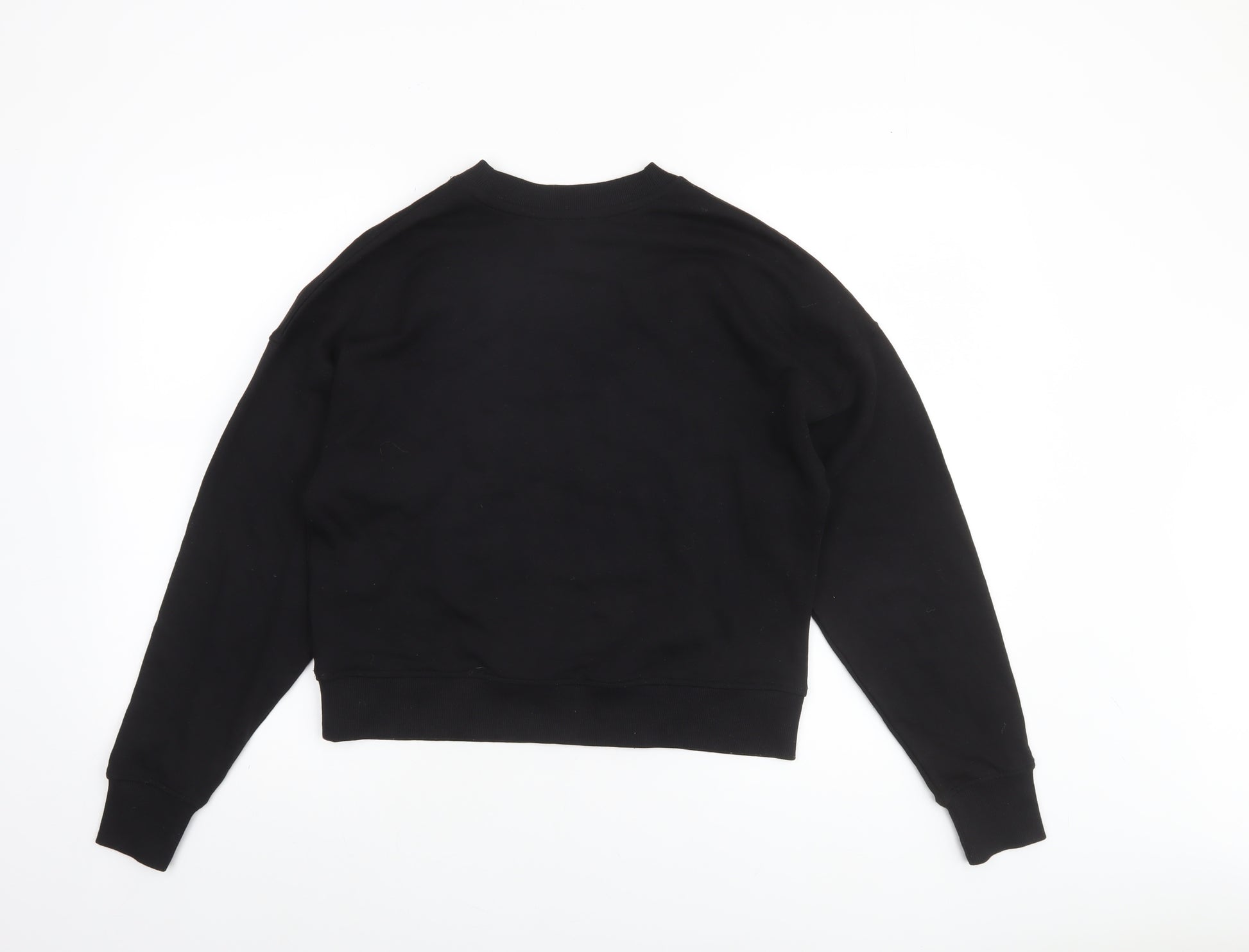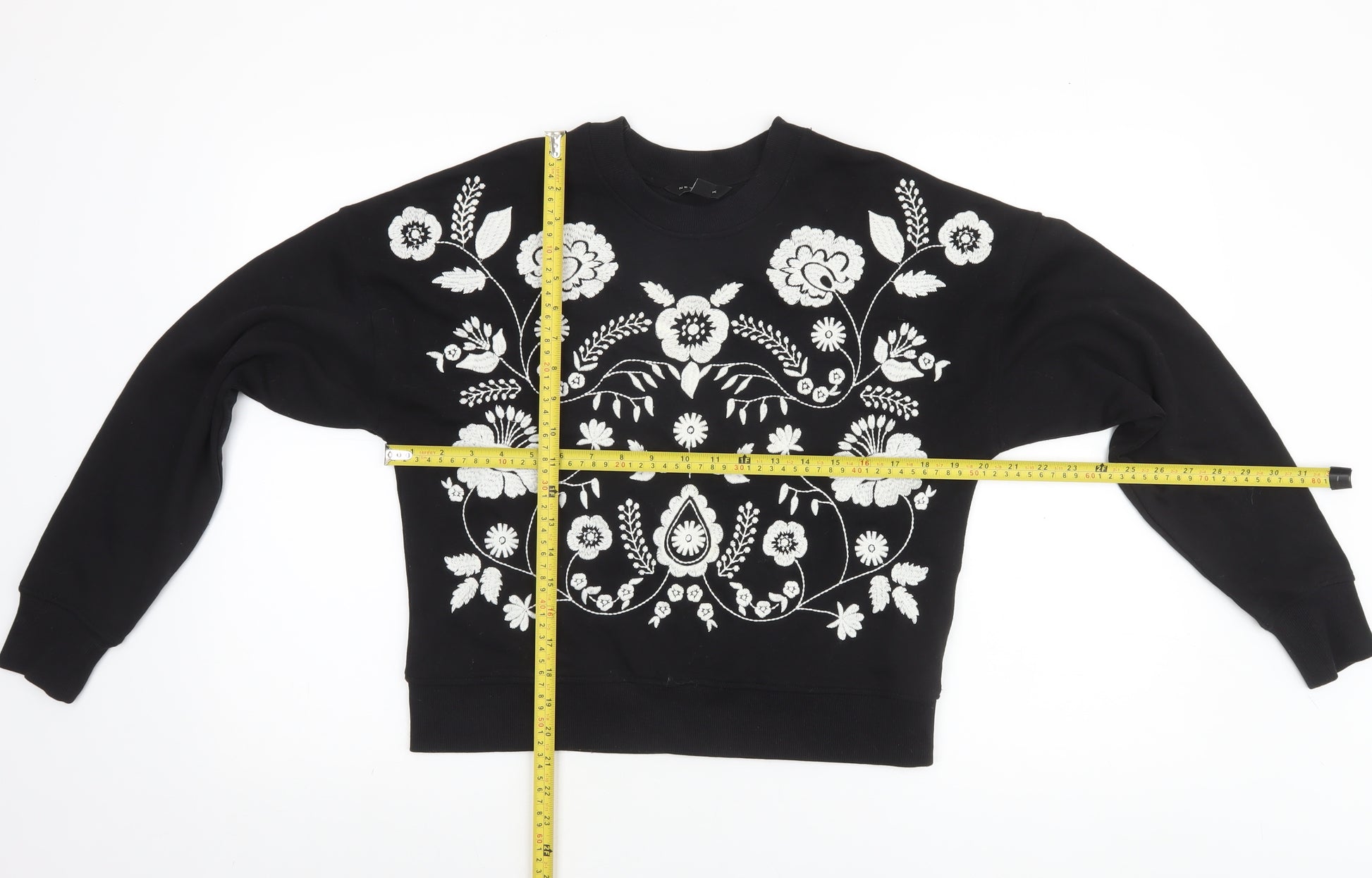 Women's Black Embroidered Floral Pullover Sweatshirt Size 10