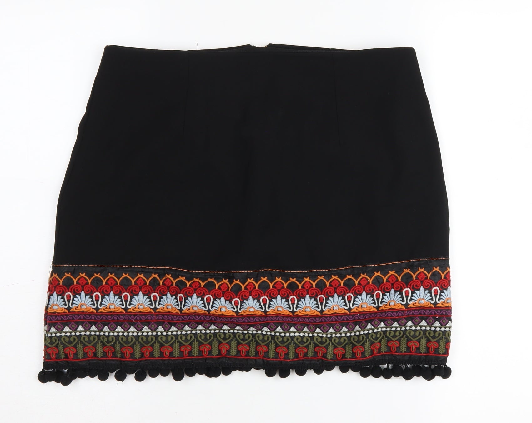Step out in style with this chic black straight and pencil skirt from New Look, perfect for any wardrobe. This women's UK size 12 skirt is crafted from 100% polyester, ensuring both comfort and durability. The standout feature of this skirt is its intricate embroidered accents, adding a touch of elegance and uniqueness to the design. The skirt is easy to wear with a convenient zip closure at the back. Ideal for versatile styling, this skirt can be dressed up or down, making it suitable for various occasions. Whether you're heading to a casual lunch or need a sophisticated piece for workwear, this skirt offers a seamless blend of style and functionality. In excellent condition, this pre-owned item is free from defects and ready to become your new favourite go-to piece. Enhance your wardrobe with this stunning skirt that effortlessly combines a timeless black hue with detailed craftsmanship, ensuring you make a stylish statement every time you wear it.
