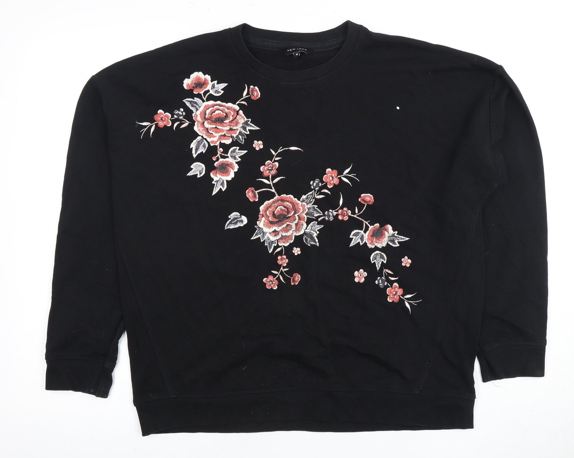 This chic New Look women's T-shirt in size 10 captures a perfect blend of casual elegance and floral charm. Made from a comfortable mix of cotton and polyester, it promises a soft, breathable experience with a hint of stretch, making it ideal for everyday wear. The T-shirt features a stunning floral embroidery on a classic black background, adding a touch of colour and femininity to your outfit. Its regular fit and long sleeves ensure a fit that's both flattering and cozy, perfect for layering in spring and autumn. Complete with a crew neckline for a timeless silhouette, this tee is a versatile addition to your wardrobe. Pair it with jeans for a casual day out or a skirt for a relaxed yet stylish evening look. In excellent condition with slight signs of gentle use, it remains a standout piece for any occasion.