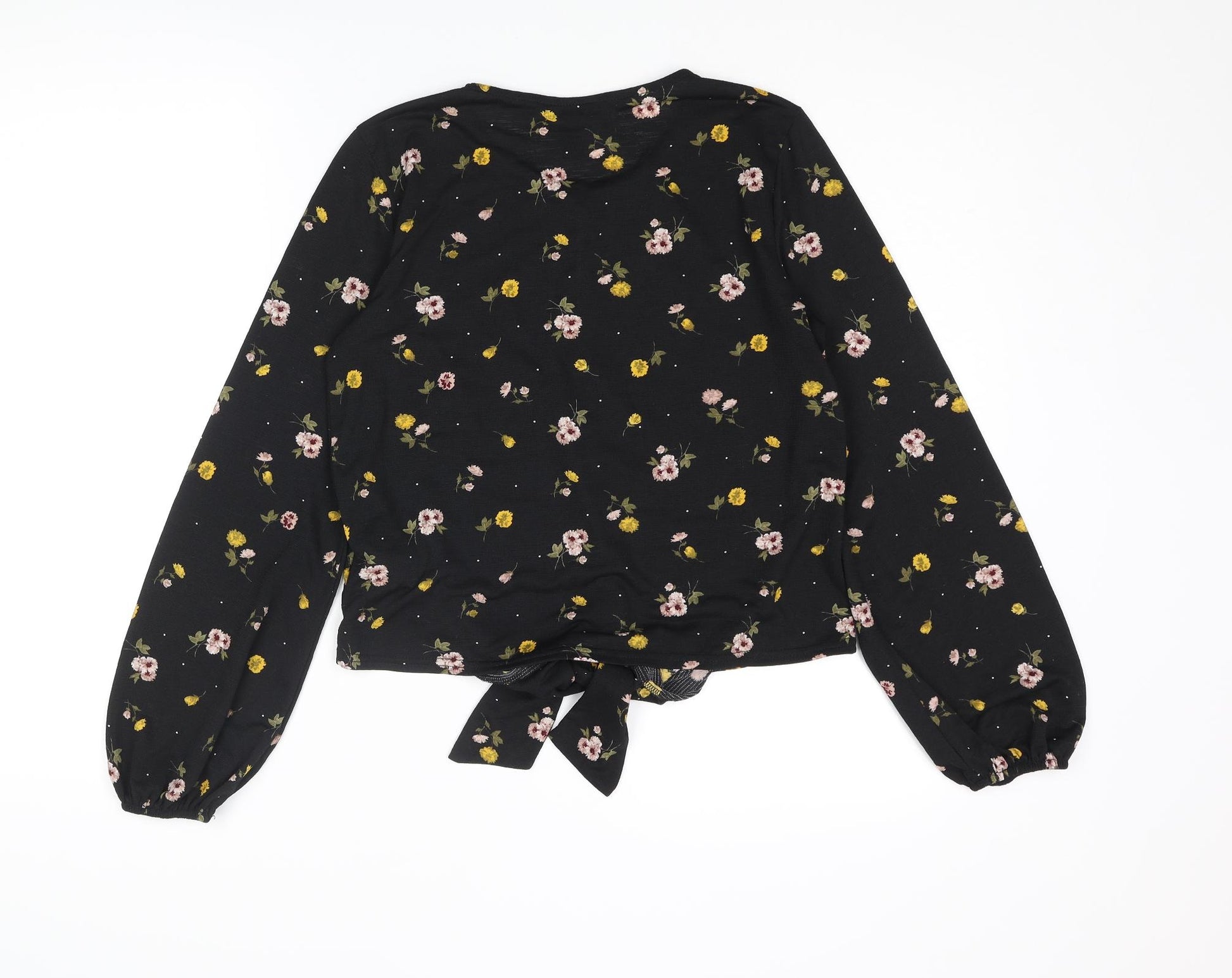 Womens Black Floral Polyester Basic Blouse Size 8 Round Neck