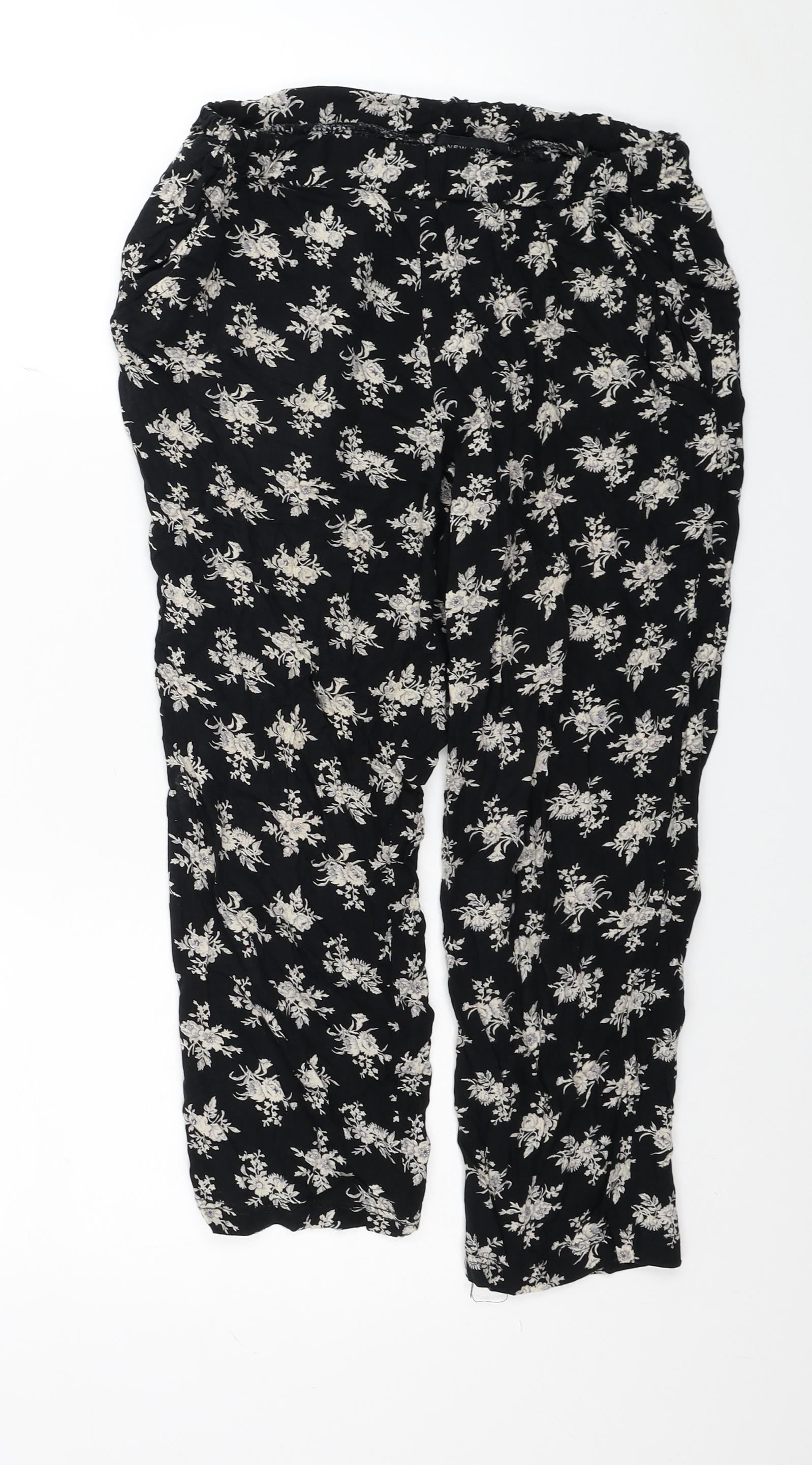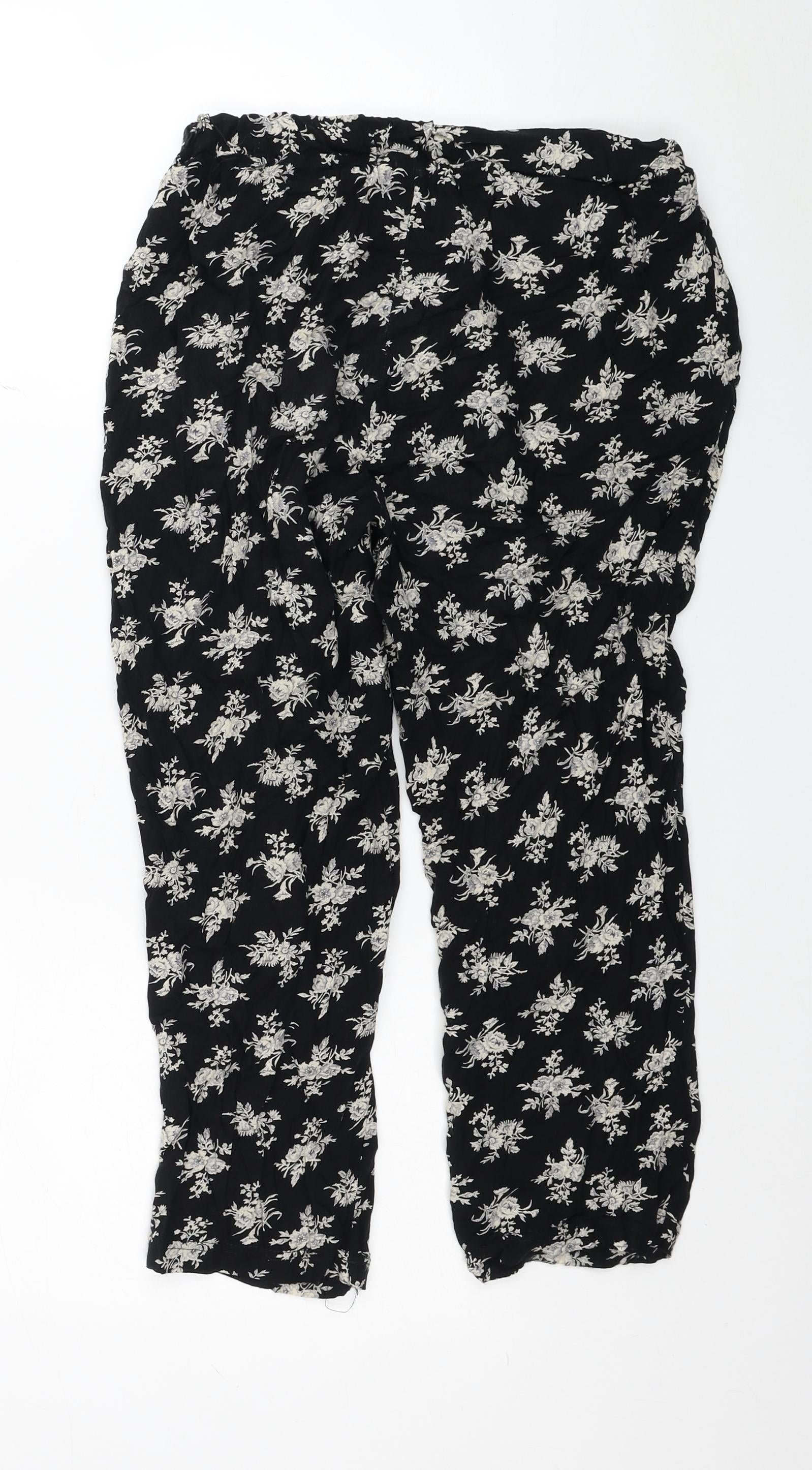 Womens Black Floral Viscose Harem Trousers Size 10 L20 in Regular