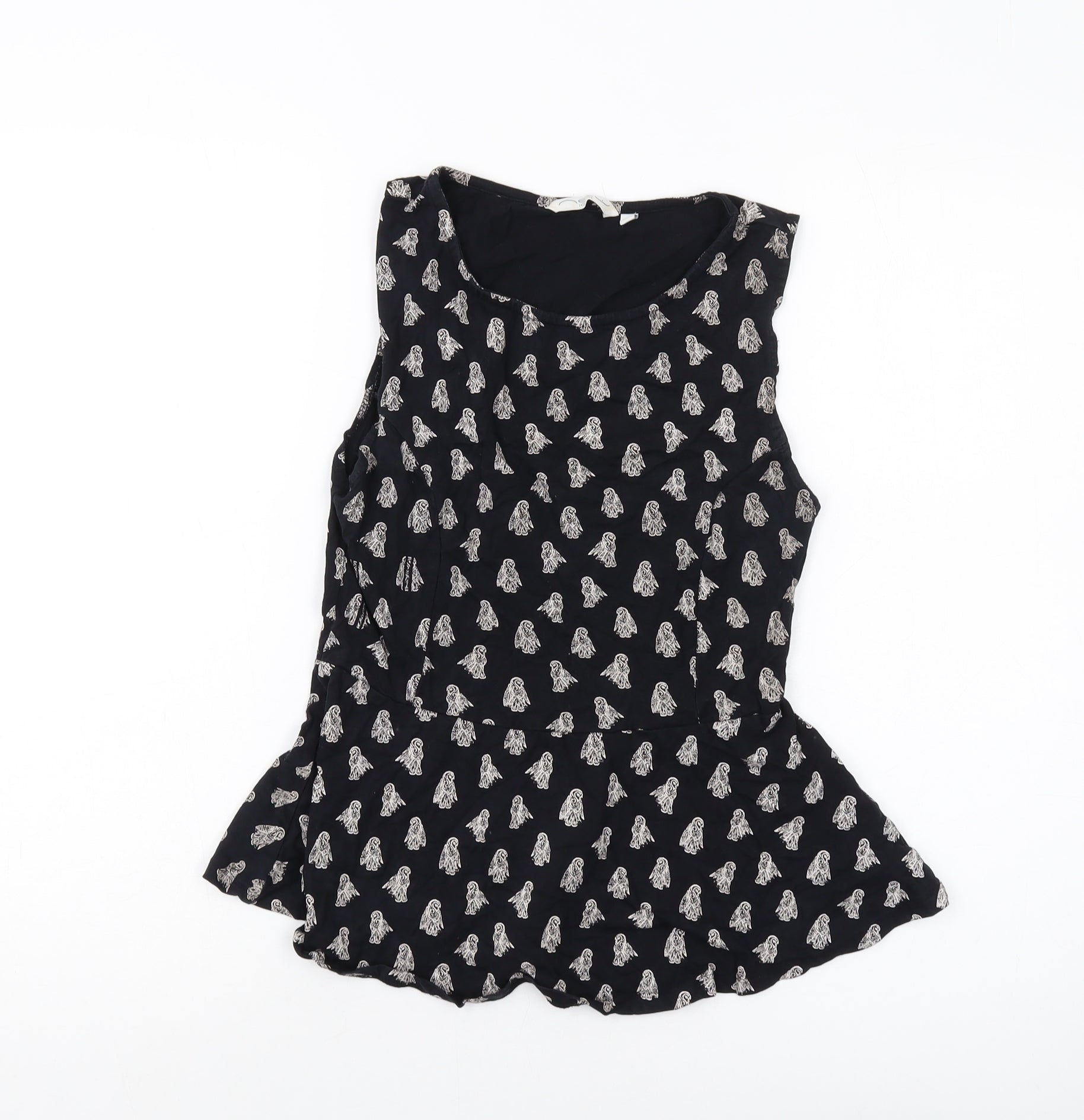 Womens Black Geometric Cotton Basic Tank Size 12 Round Neck