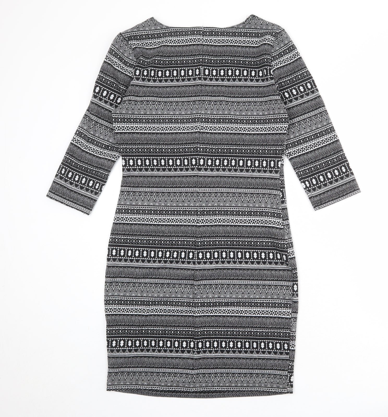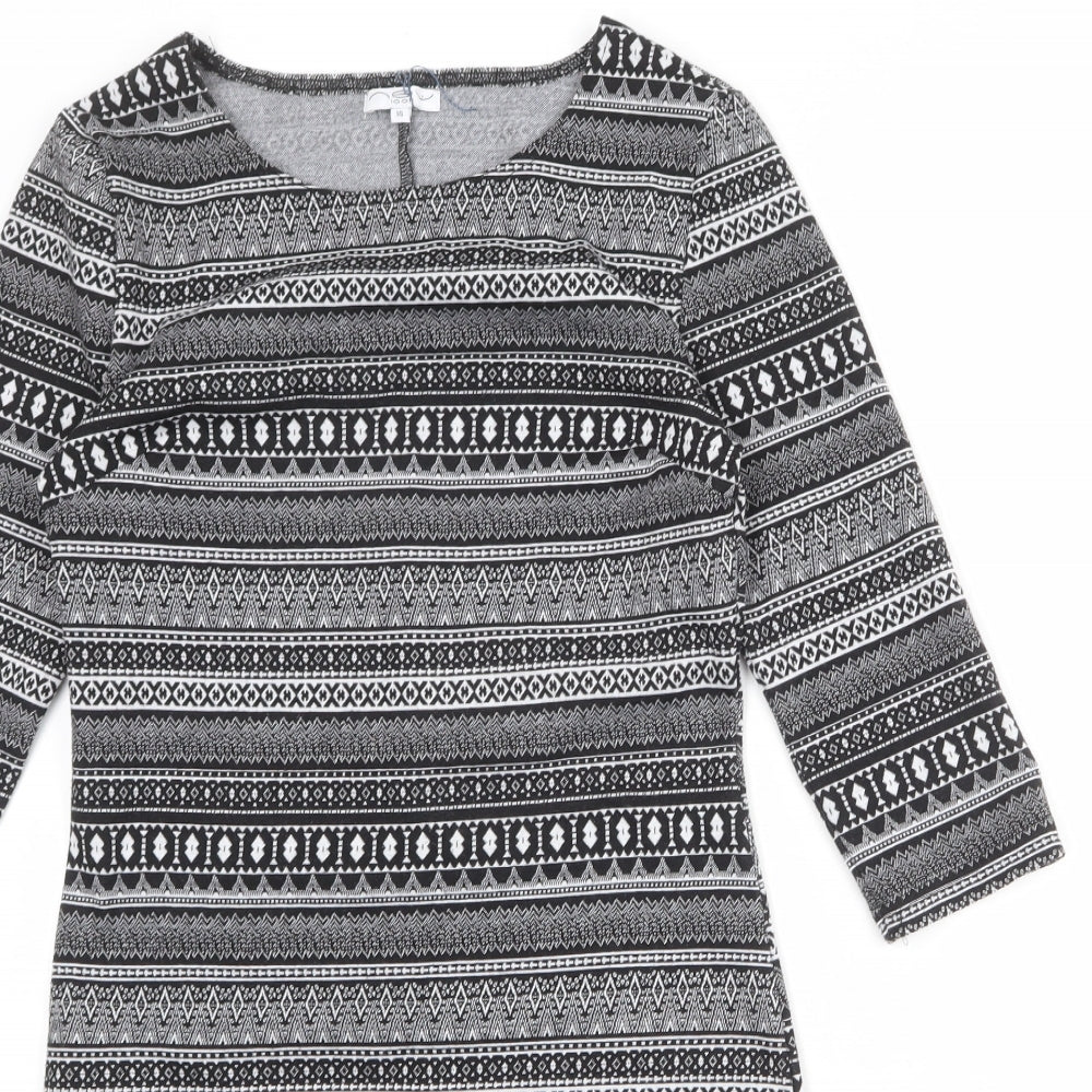Womens Black Geometric Polyester Bodycon Size 14 Round Neck Pullover