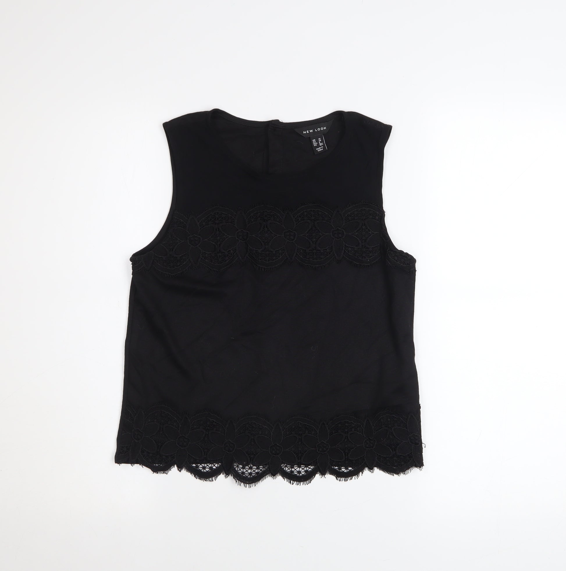 This elegant New Look women's sleeveless lace top offers a timeless addition to your wardrobe, blending chic style with everyday comfort. Crafted from a soft blend of polyester and viscose with delicate lace detailing made from nylon and elastane, the blouse features a flattering regular fit and a smooth woven body for all-day wear. The scalloped lace trim along the hem and midsection adds a feminine, sophisticated touch, ideal for both casual and evening occasions. Designed in classic black, this top pairs effortlessly with jeans, skirts, or tailored trousers for a variety of looks suitable for spring and summer seasons. The round neckline and button fastening at the back ensure a refined and polished appearance. Perfect for casual outings, parties, or date nights, this versatile blouse elevates any outfit with its simple yet refined design. In excellent pre-owned condition with minimal signs of wear, it presents like new and remains ready to bring elegant charm to your style. Machine washable for easy care, this top is perfect for those who appreciate comfort and understated sophistication. Whether dressed up with statement jewellery or worn under a blazer for a smart-casual look, this New Look lace blouse guarantees effortless style and confidence at any event. Make it your go-to piece for adding subtle glamour to your collection — a classic essential that feels just as good as it looks.