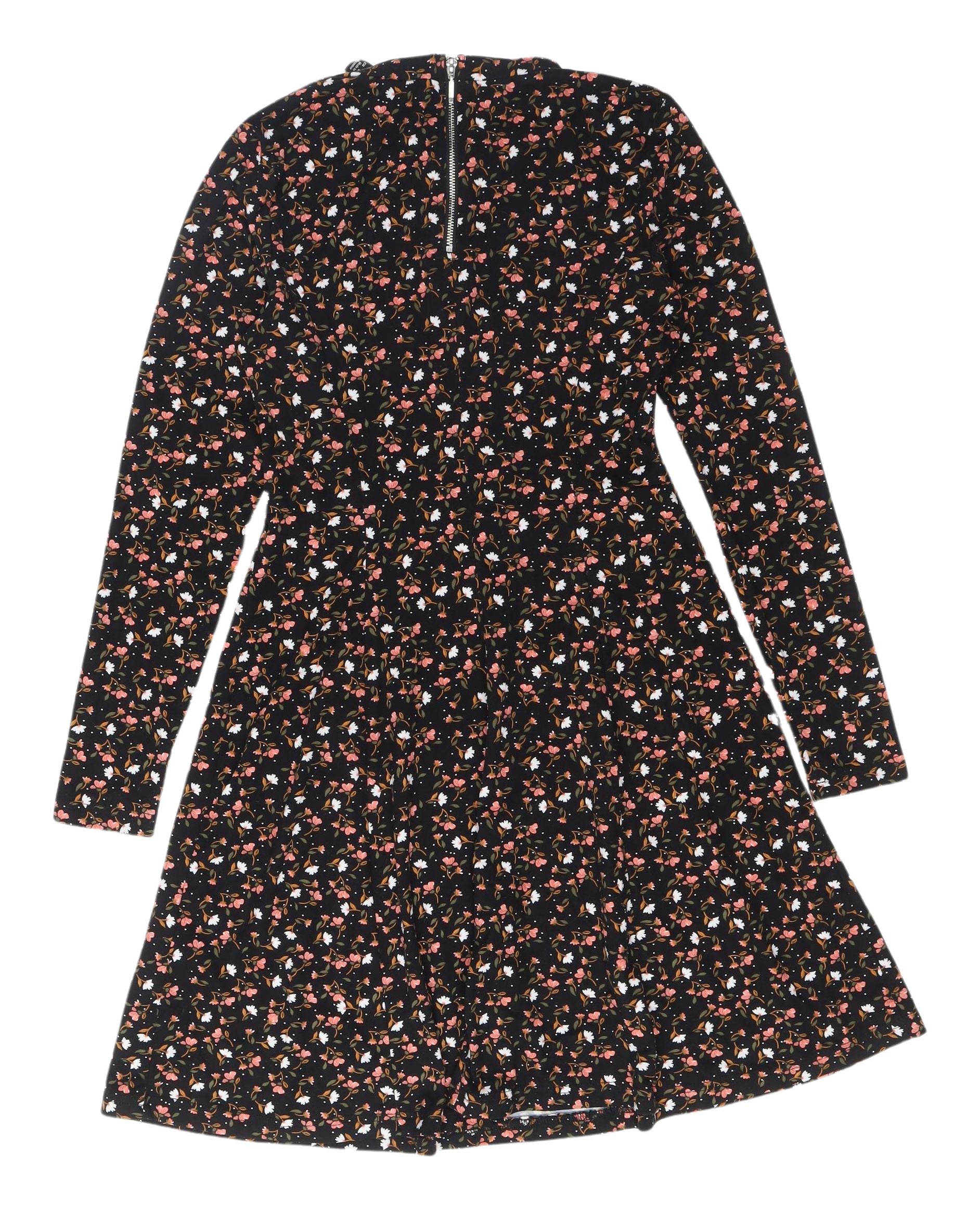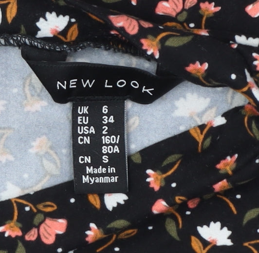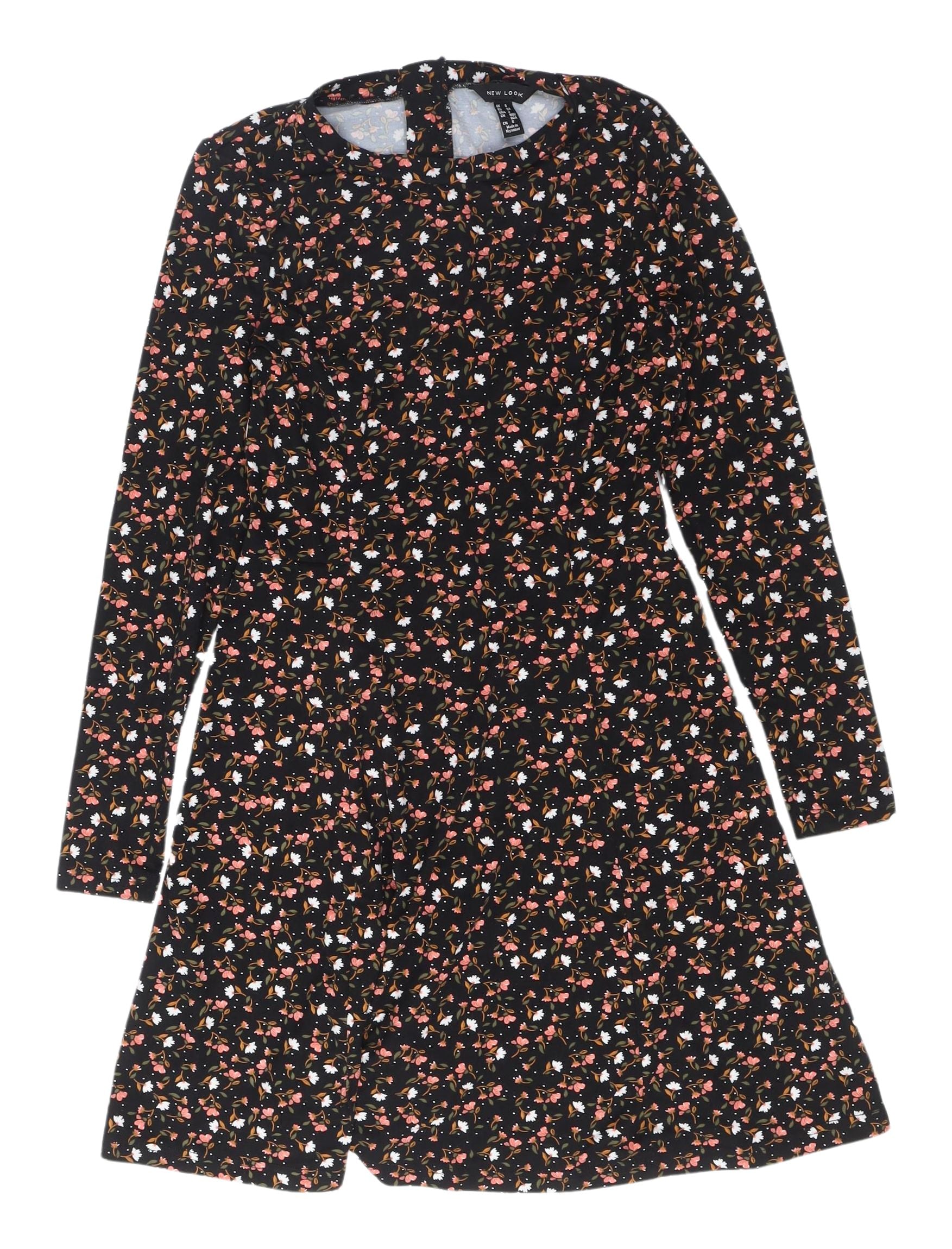 Step out in style with this elegant New Look women's dress, perfect for adding a touch of flair to your wardrobe. In a classic black hue adorned with a charming floral pattern, this dress offers a timeless look suitable for various occasions. Featuring a comfortable jersey fabric made from a blend of 91% polyester and 9% elastane, it provides a flattering and flexible fit. The long sleeves and crew neckline add a sophisticated touch, making it ideal for cooler days. Finished with a discreet zip closure at the back, this stylish piece is easy to wear, ensuring you're ready to go in no time. In excellent condition with no visible defects, this dress is a must-have for any fashion-forward wardrobe. Elevate your everyday look or dress it up with accessories for a special event. Its regular size type ensures a perfect fit for UK size 6, making it a versatile choice for women who love to play with style.