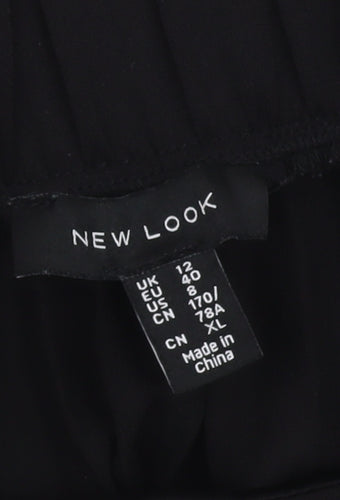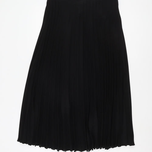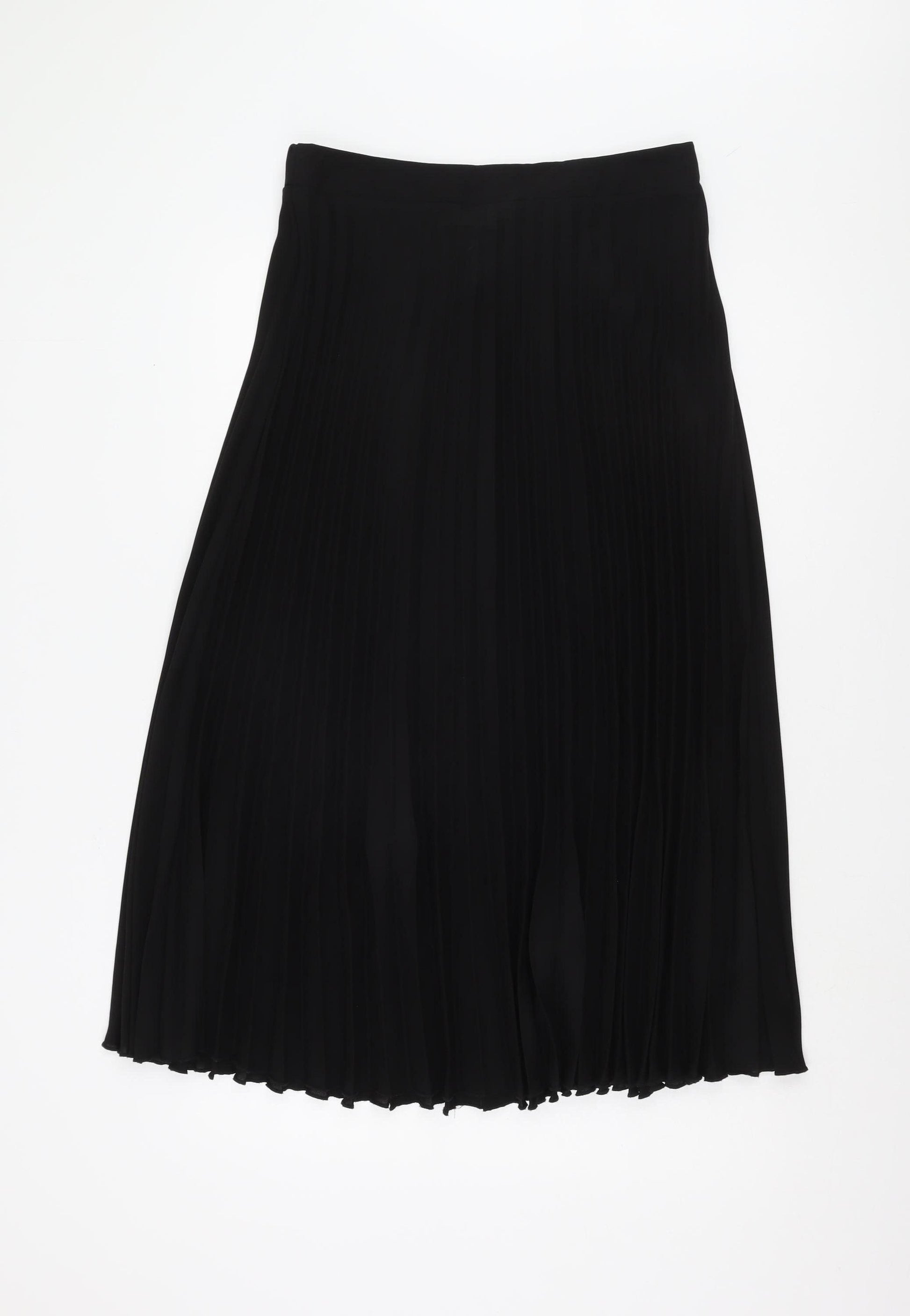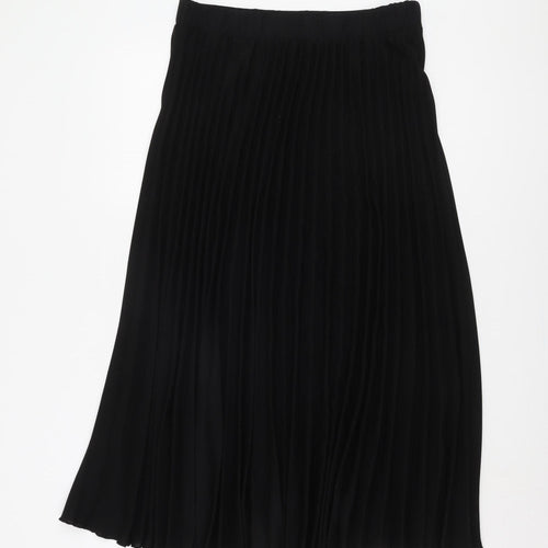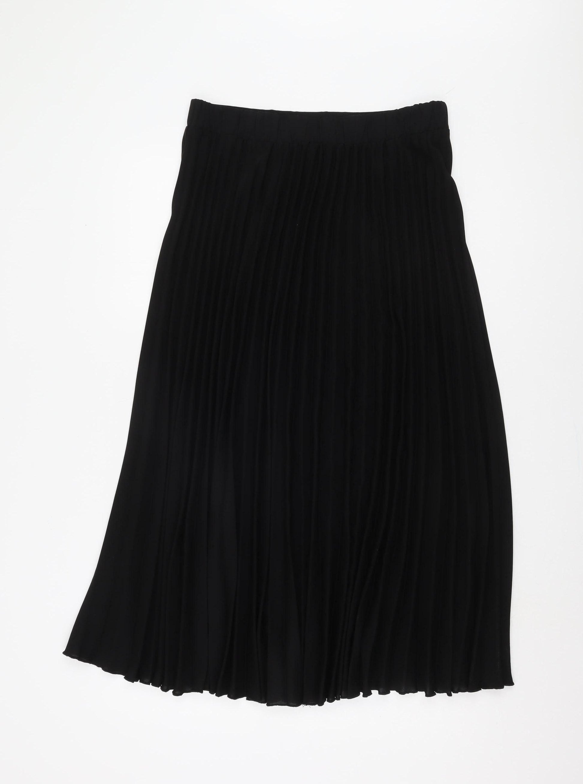 Elevate your wardrobe with this elegant New Look Women's Black Pleated Midi Skirt. Designed perfectly for versatile styling, this skirt in size 12 is an ideal addition to any fashion-forward woman's collection. Its classic black colour makes it easy to pair with almost anything, while the pleated style adds a touch of sophistication and movement to your outfit, suitable for both casual and dressed-up occasions. This skirt is crafted from high-quality polyester chiffon, providing a lightweight and comfortable fit that drapes beautifully on any body type. The elastic waist feature ensures a snug yet flexible fit, making it an effortlessly stylish option for any day. Perfect for all seasons, its timeless appeal makes it a great piece to wear and re-wear throughout the year. The skirt showcases excellent craftsmanship with no visible defects, providing a near-new appearance without any signs of wear, being in excellent condition. Though not new with tags, it offers fantastic value as a pre-loved piece. Experience the chic simplicity of this pleated midi skirt, which embodies sophistication and casual comfort effortlessly, making it a staple in any modern wardrobe.