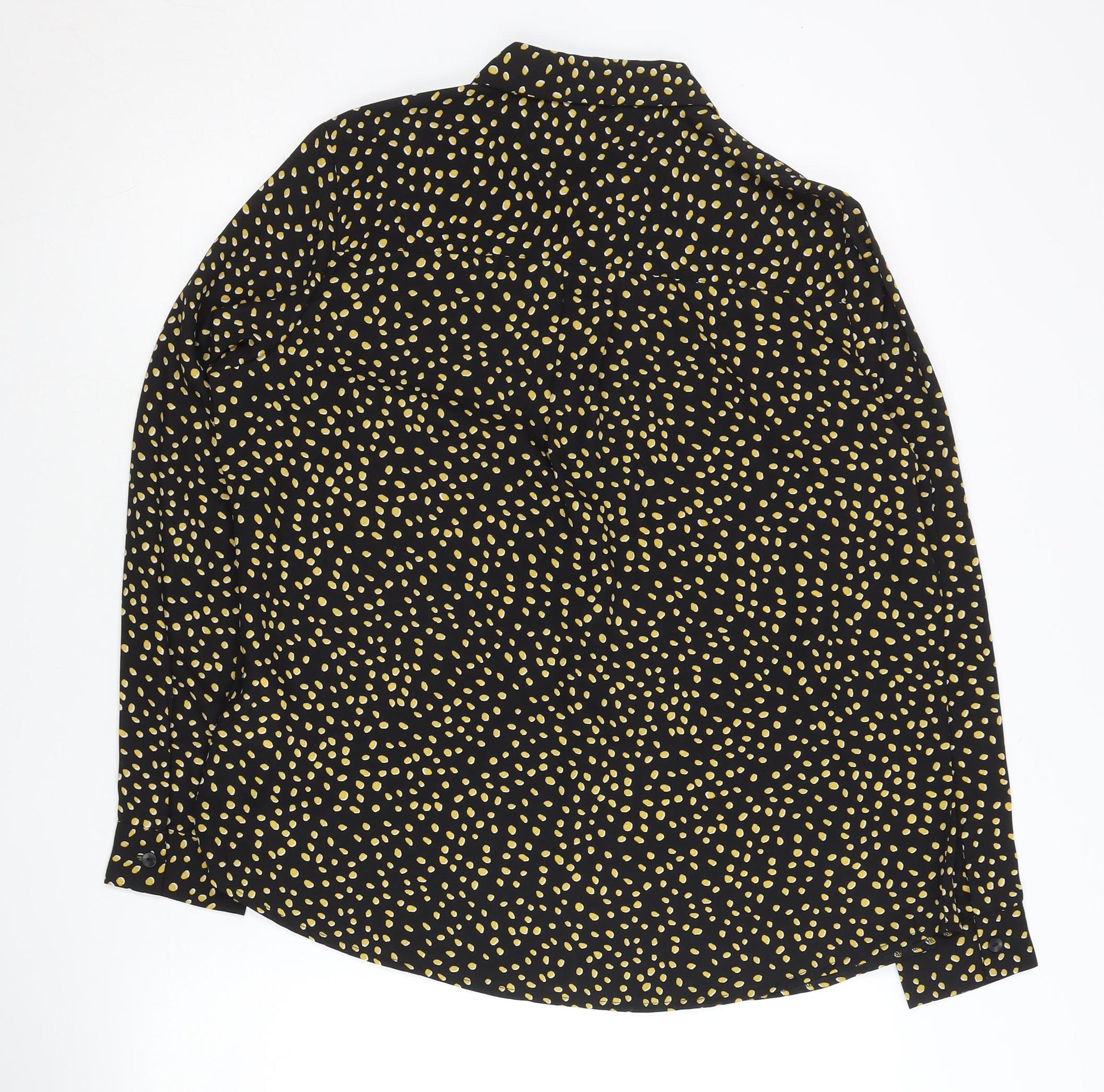 Womens Black Polka Dot Button-Up Shirt Size 14
