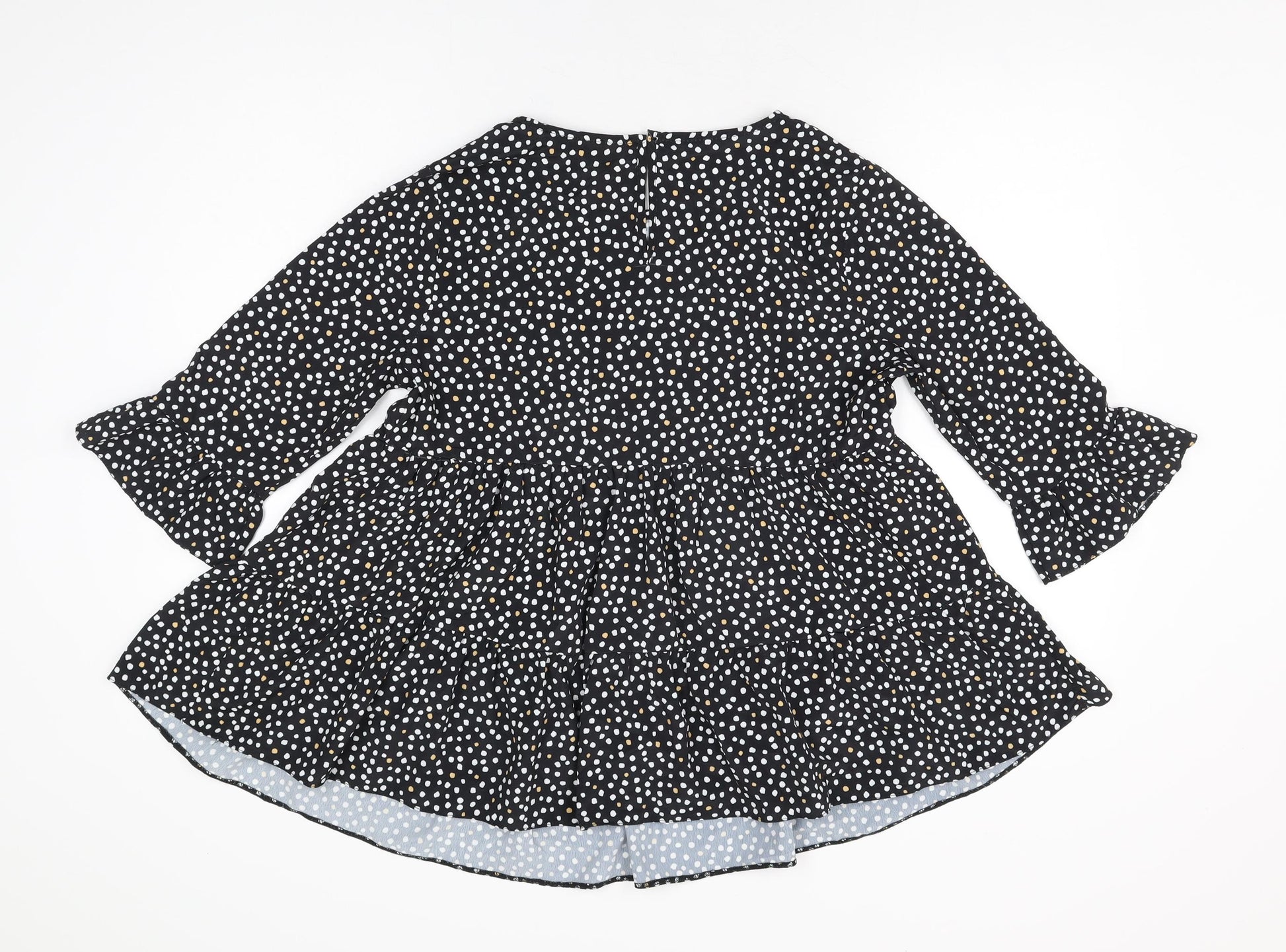 Womens Black Polka Dot Polyester Basic Blouse Size 8 Round Neck