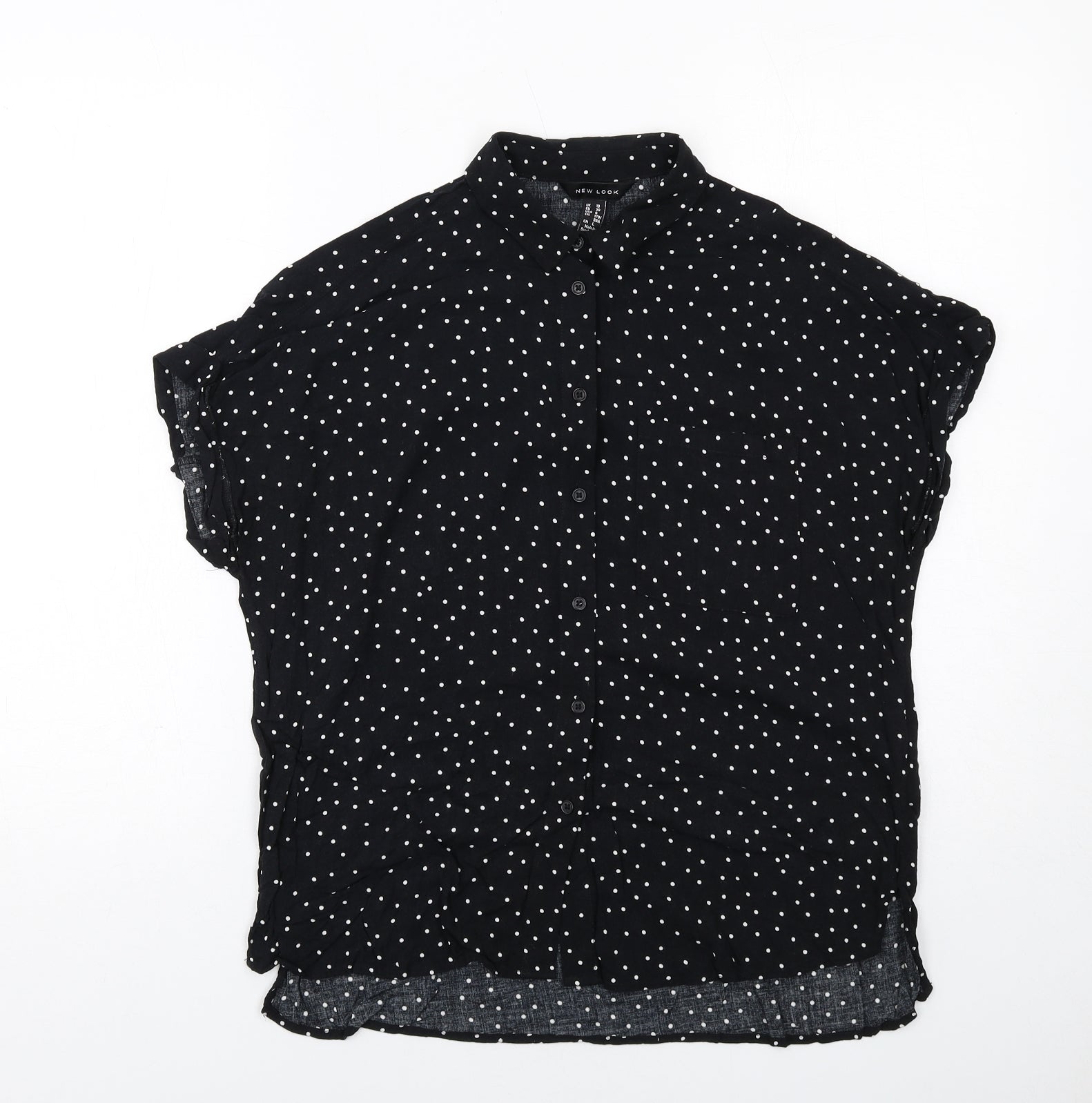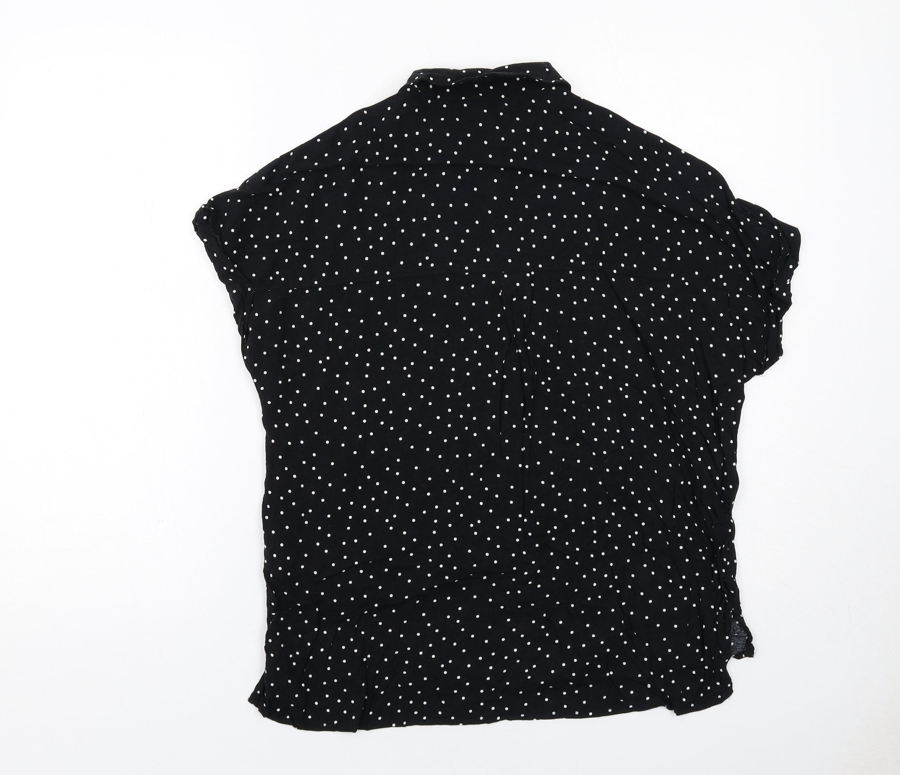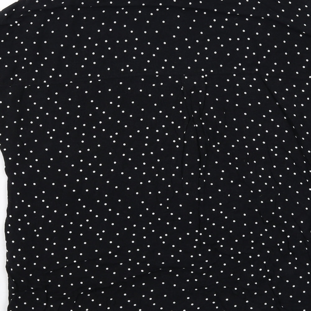 Womens Black Polka Dot Viscose Basic Button-Up Size 10 Collared