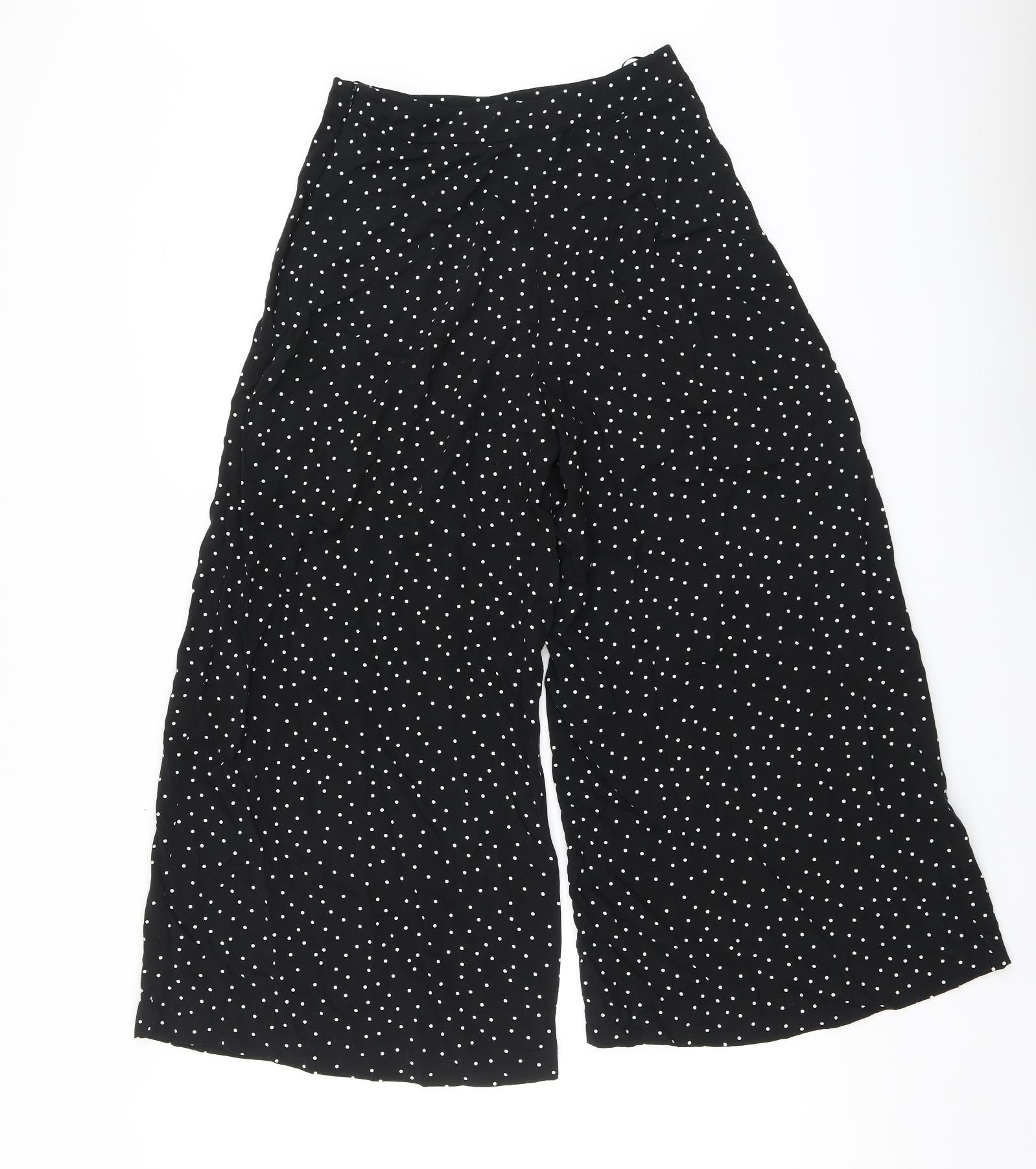 Womens Black Polka Dot Viscose Trousers Size 8 L24 in Regular Button