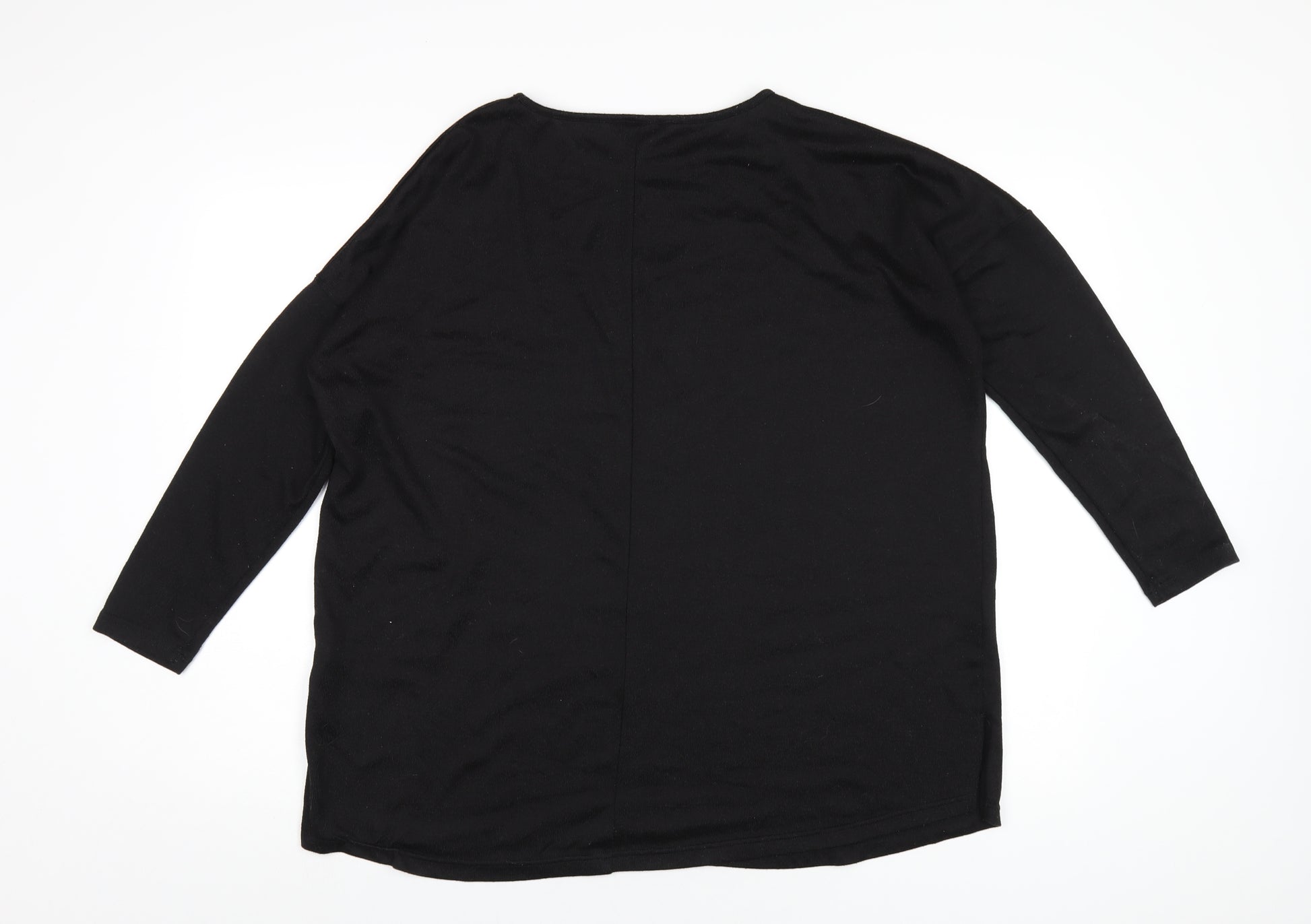New Look Women Black Short Sleeve Basic Crew Neck T-Shirt Size 14