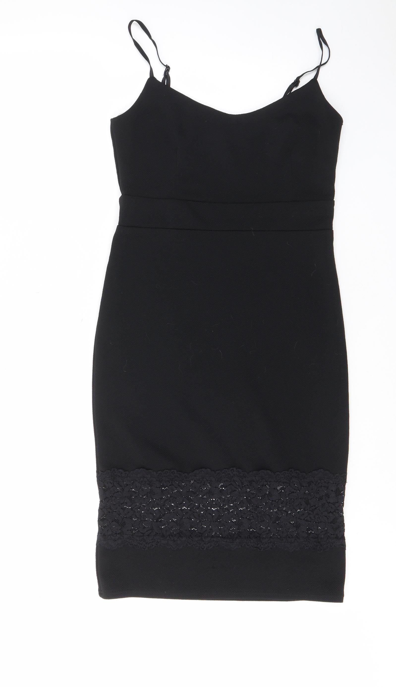 Womens Black Polyester Bodycon Size 12 V-Neck Pullover - Lace