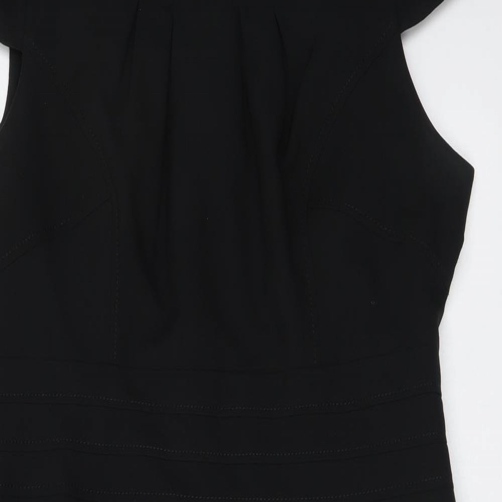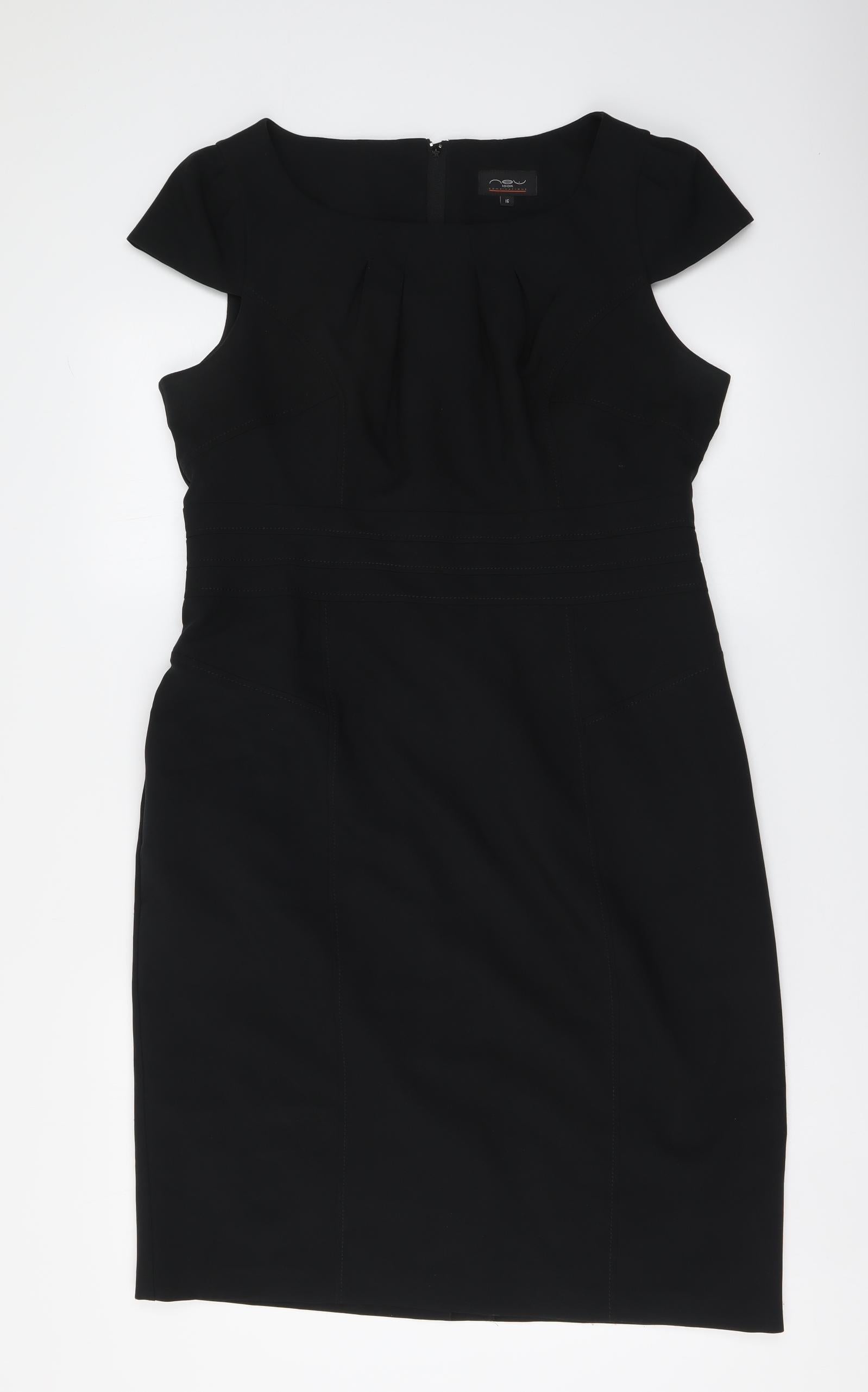 Womens Black Polyester Bodycon Size 16 Round Neck Zip