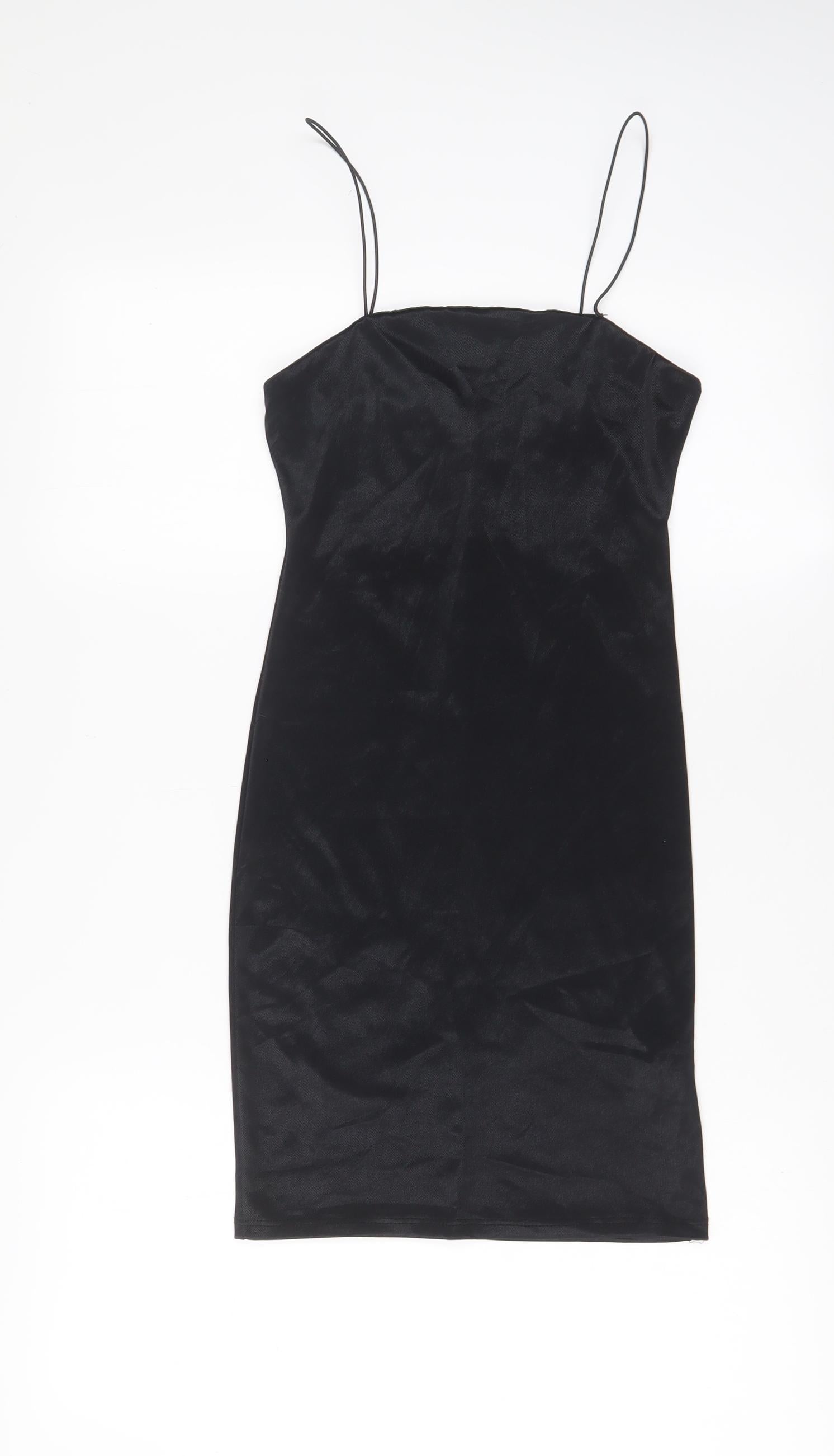 Womens Black Polyester Bodycon Size 6 Square Neck Pullover - Straps