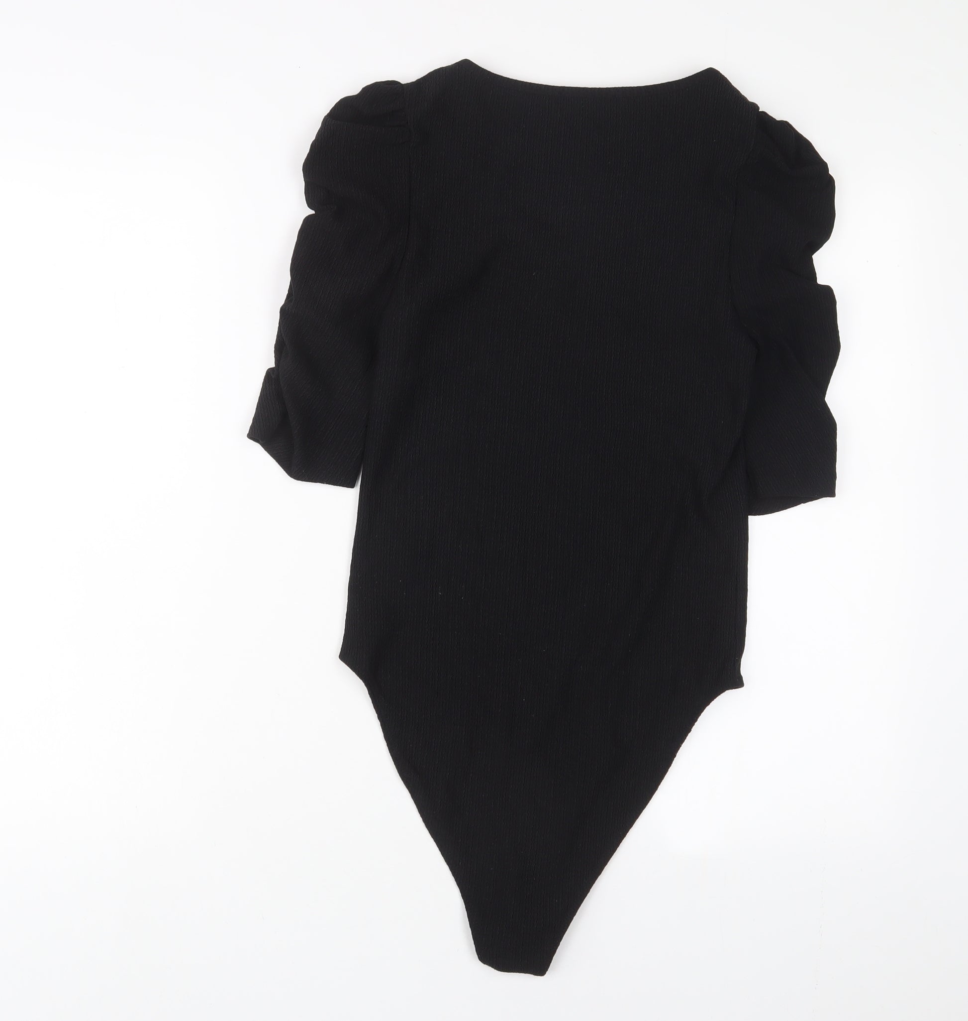 Womens Black Polyester Bodysuit One-Piece Size 12 Snap