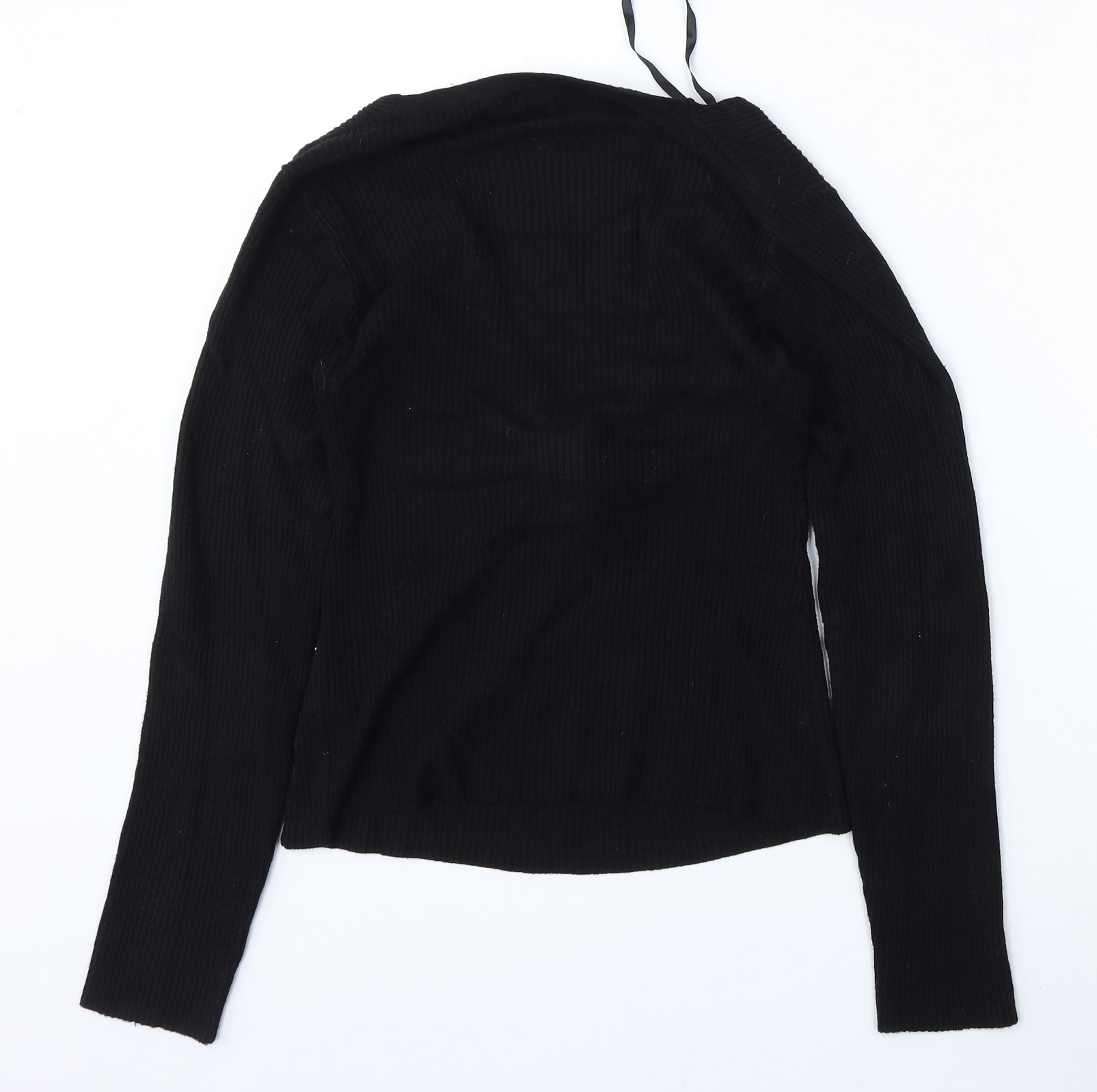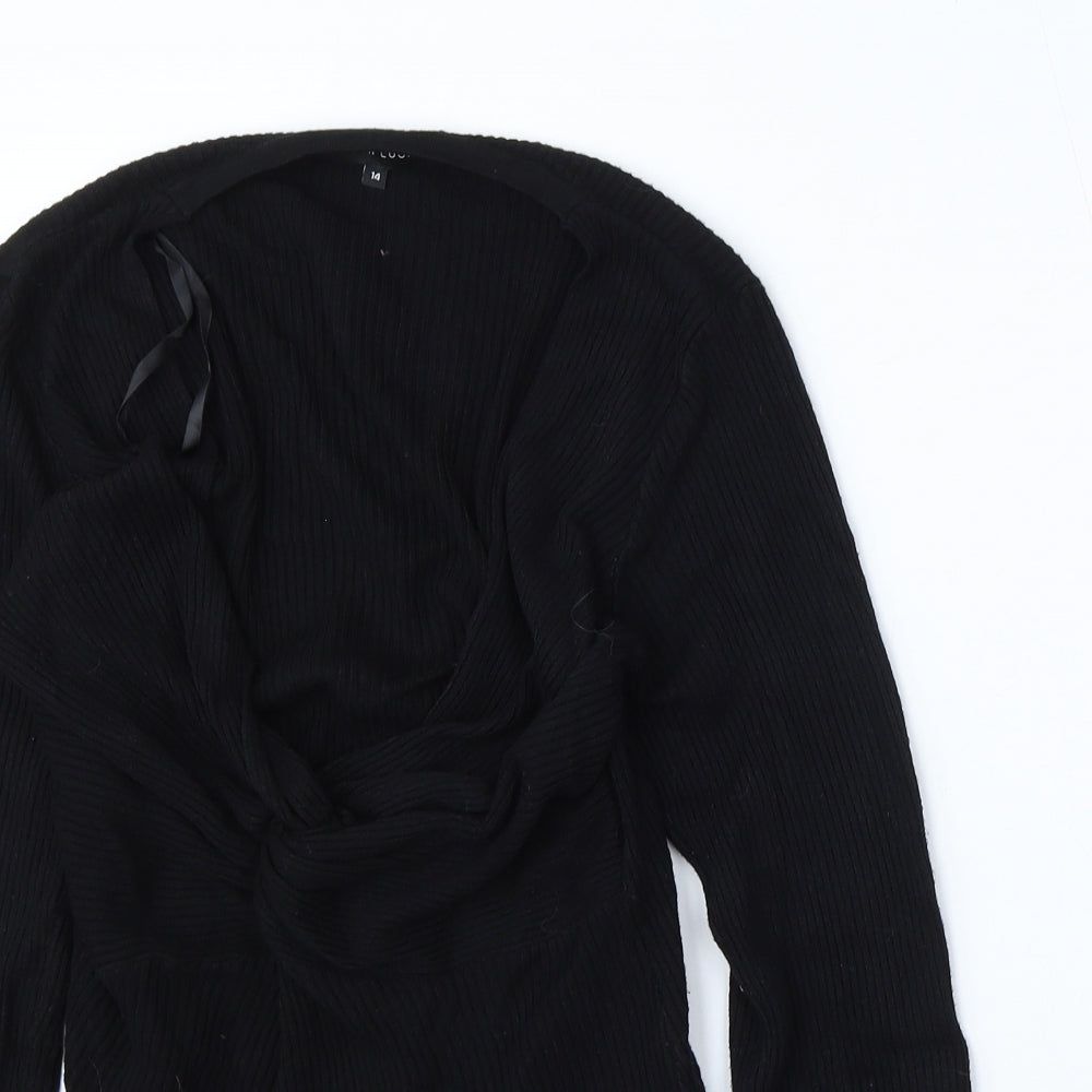 Womens Black Round Neck Viscose Pullover Jumper Size 14