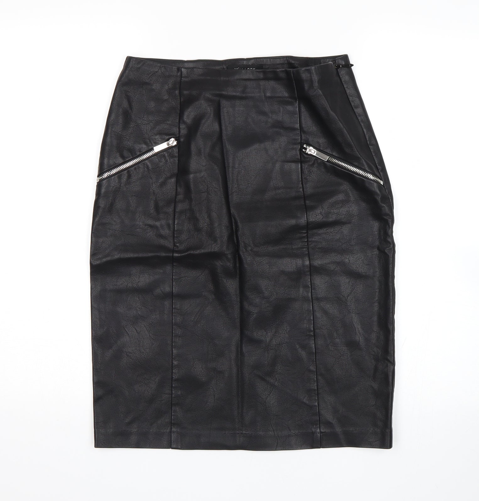 New Look Women Black Faux Leather Short Pencil Skirt Size 8