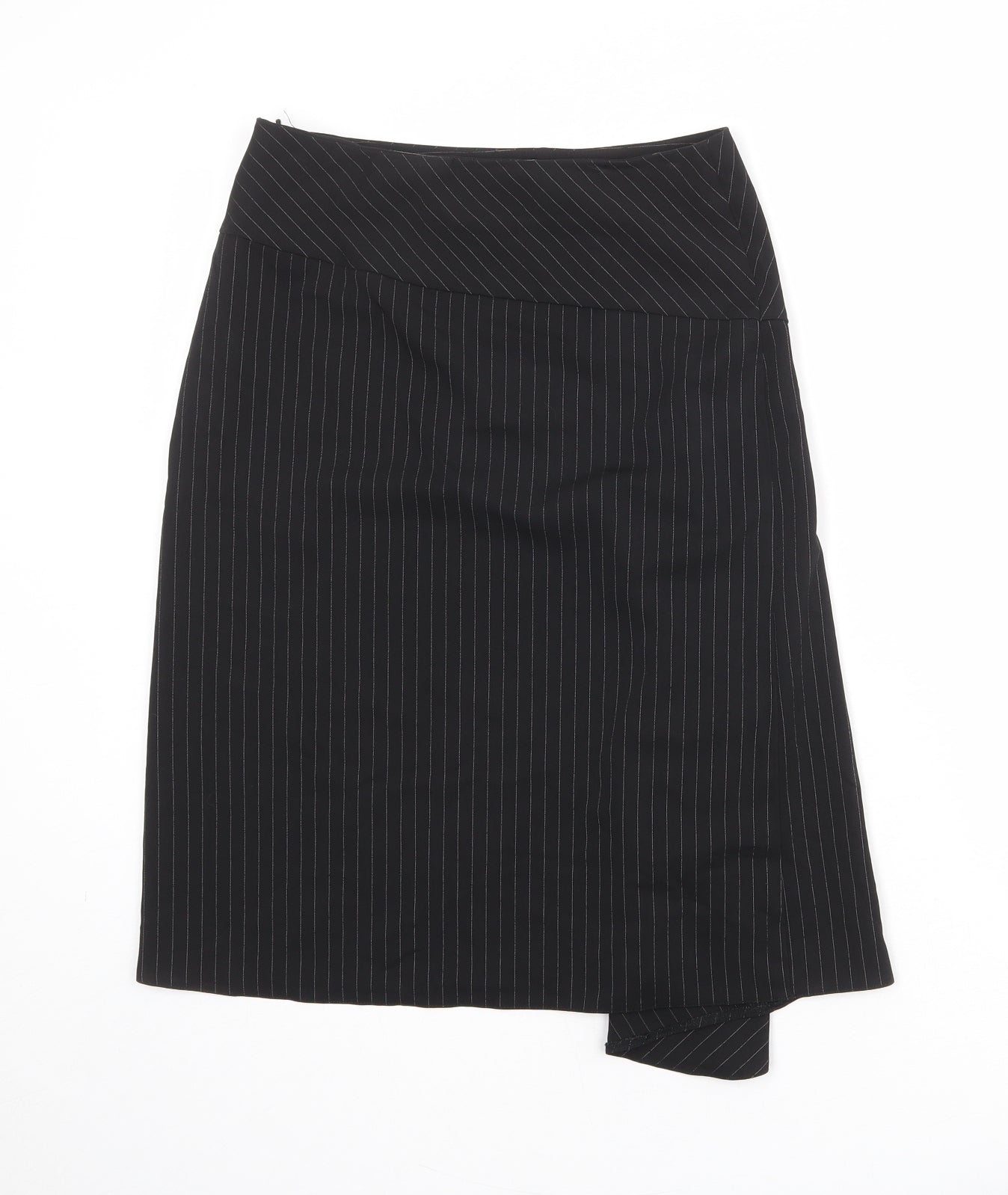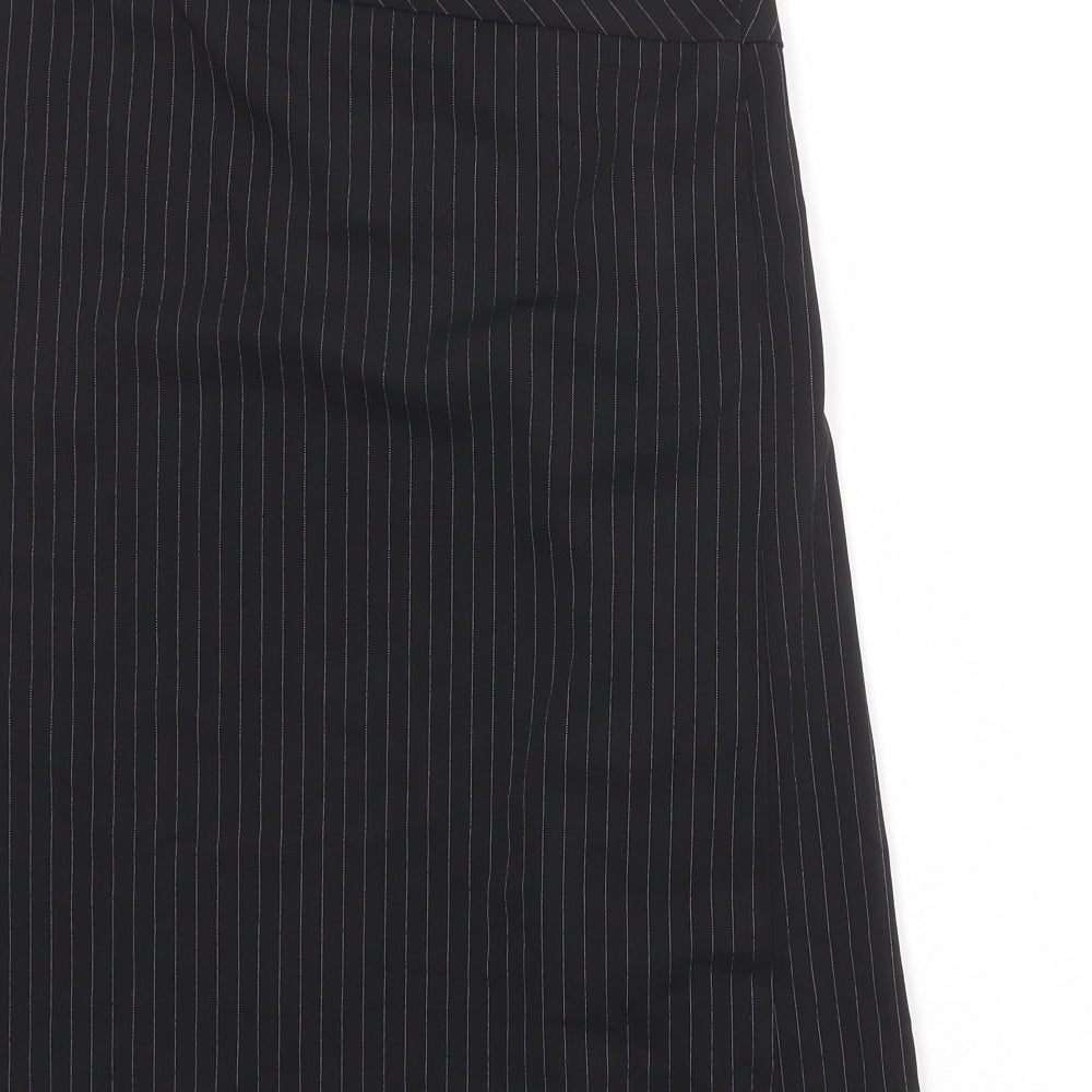 Womens Black Striped Polyester A-Line Skirt Size 10 Zip
