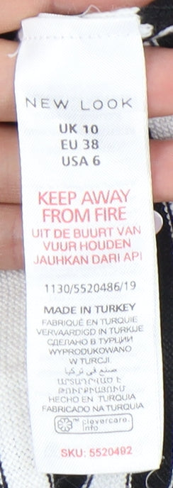 Elevate your casual wardrobe with this stylish black striped pullover jumper from New Look. Designed for women, this regular fit jumper features a classic crew neck and comfortable long sleeves, making it perfect for all-season wear. The breathable acrylic, cotton, and polyester blend ensures both comfort and durability. The jumper's eye-catching striped pattern is enhanced by a charming embroidered motif on the front, adding a playful touch to any outfit. Ideal for casual occasions, this knit fabric piece is easy to care for, as it is machine washable. With its timeless black colour, this jumper pairs effortlessly with jeans or skirts for a relaxed yet chic look. Whether you're heading out for a day of shopping or enjoying a weekend brunch, this New Look pullover jumper is a versatile addition to your clothing collection. Don't miss the opportunity to add a touch of charm and comfort to your style with this must-have, easygoing jumper.