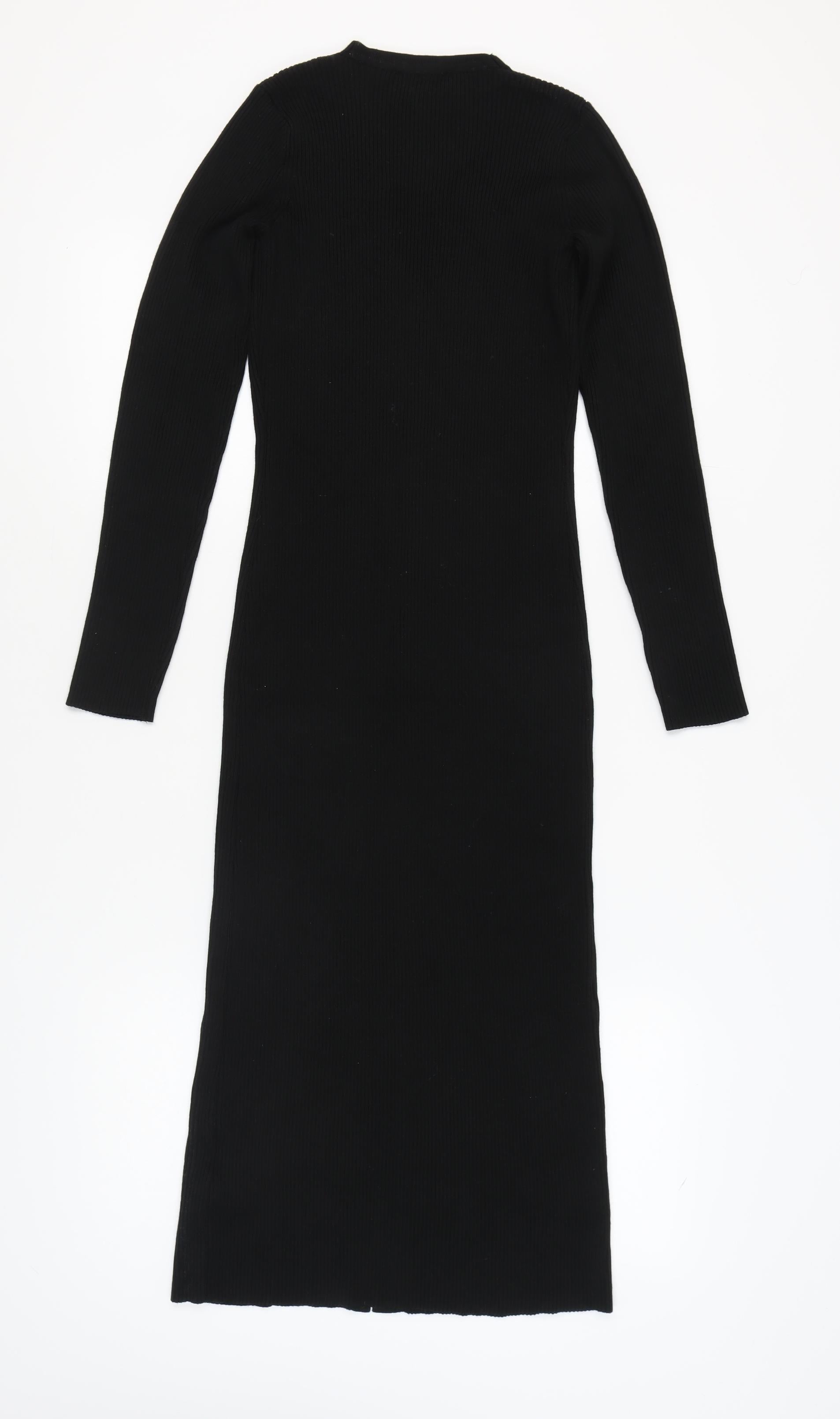 Women's Black V-Neck Bodycon Midi Dress Size 12