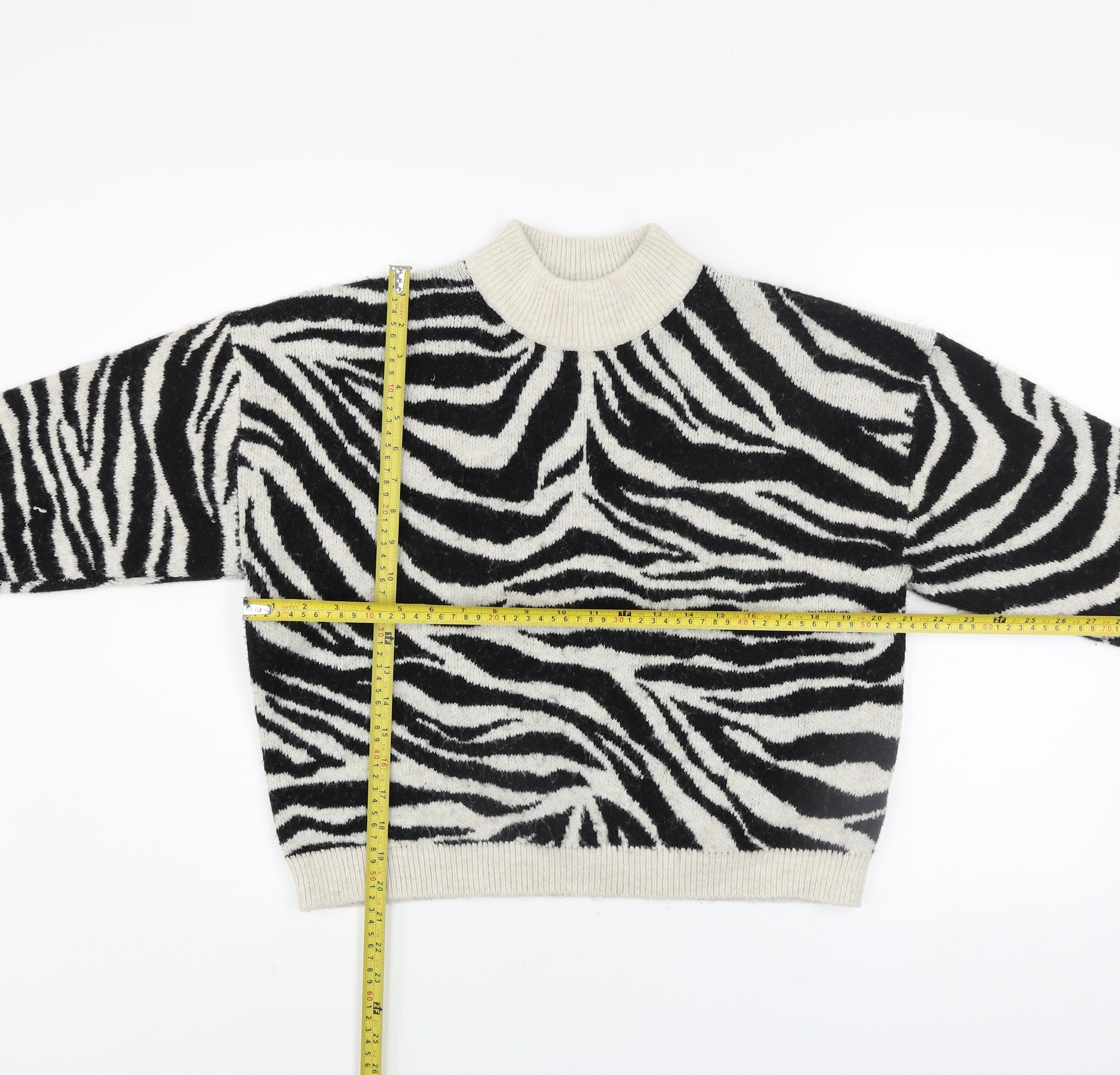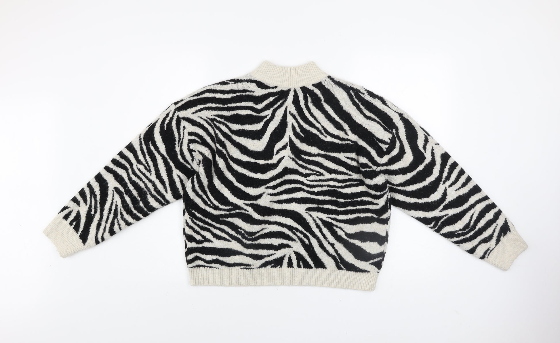 Womens Black & White Zebra Knit Mock Neck Pullover Jumper Size M