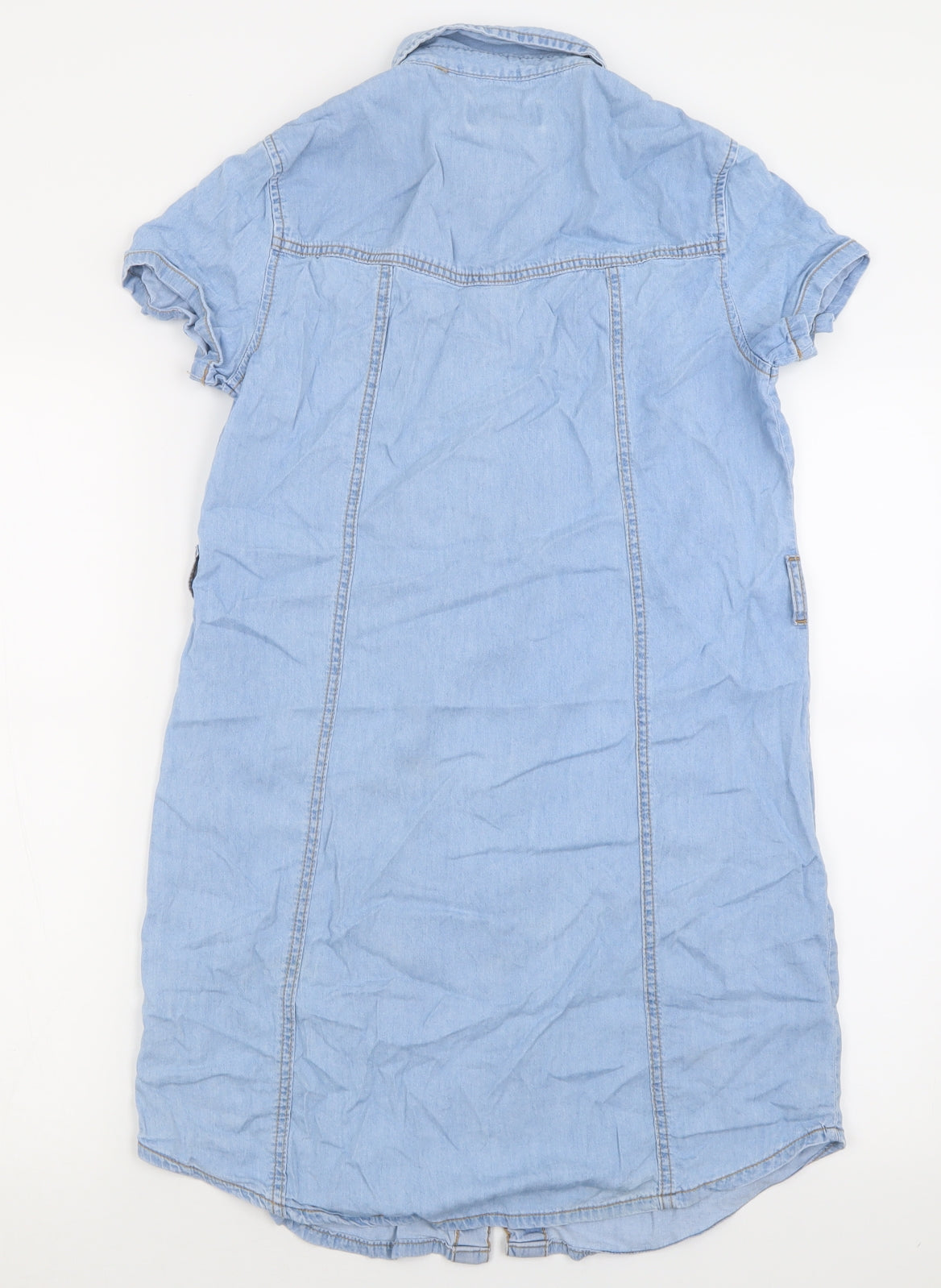 Womens Blue Cotton A-Line Size 10 Collared Button