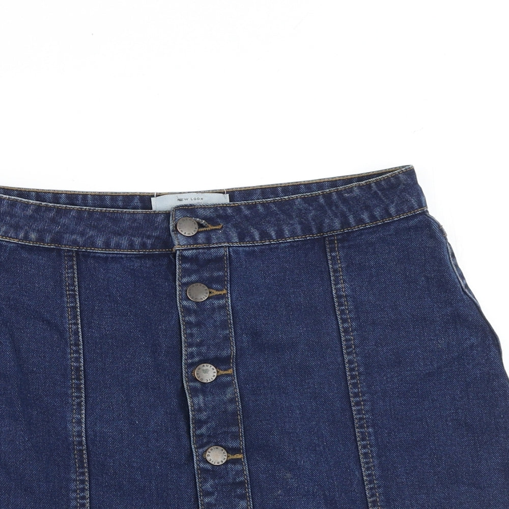 Womens Blue Cotton A-Line Skirt Size 10 Button