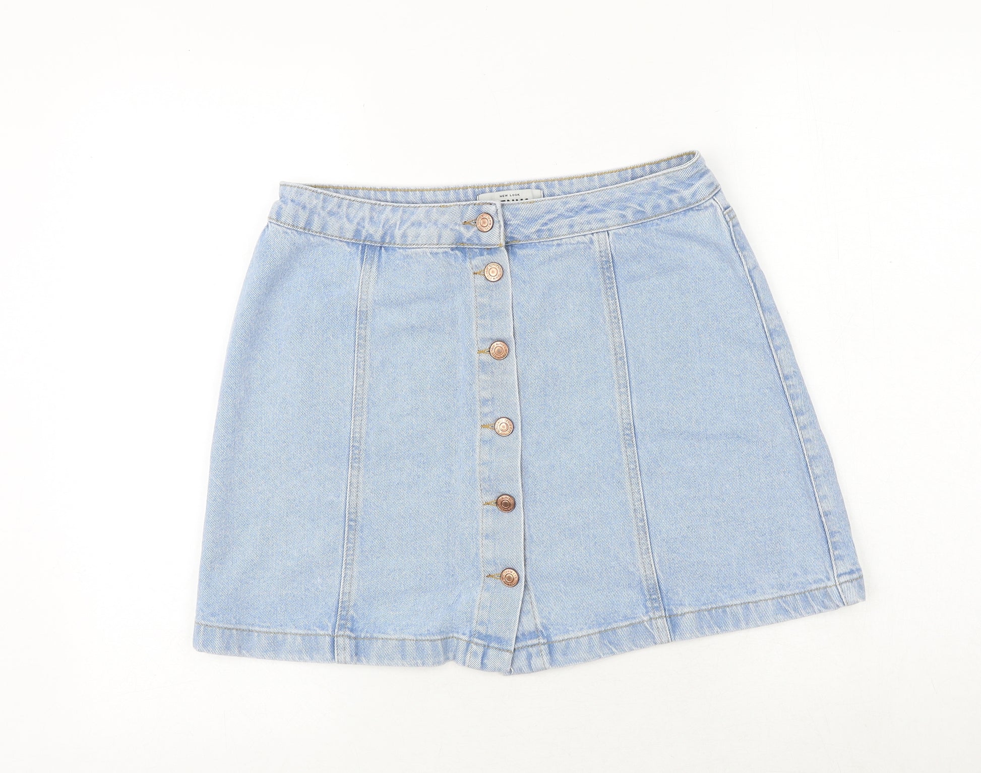 Womens Blue Cotton A-Line Skirt Size 12 Button