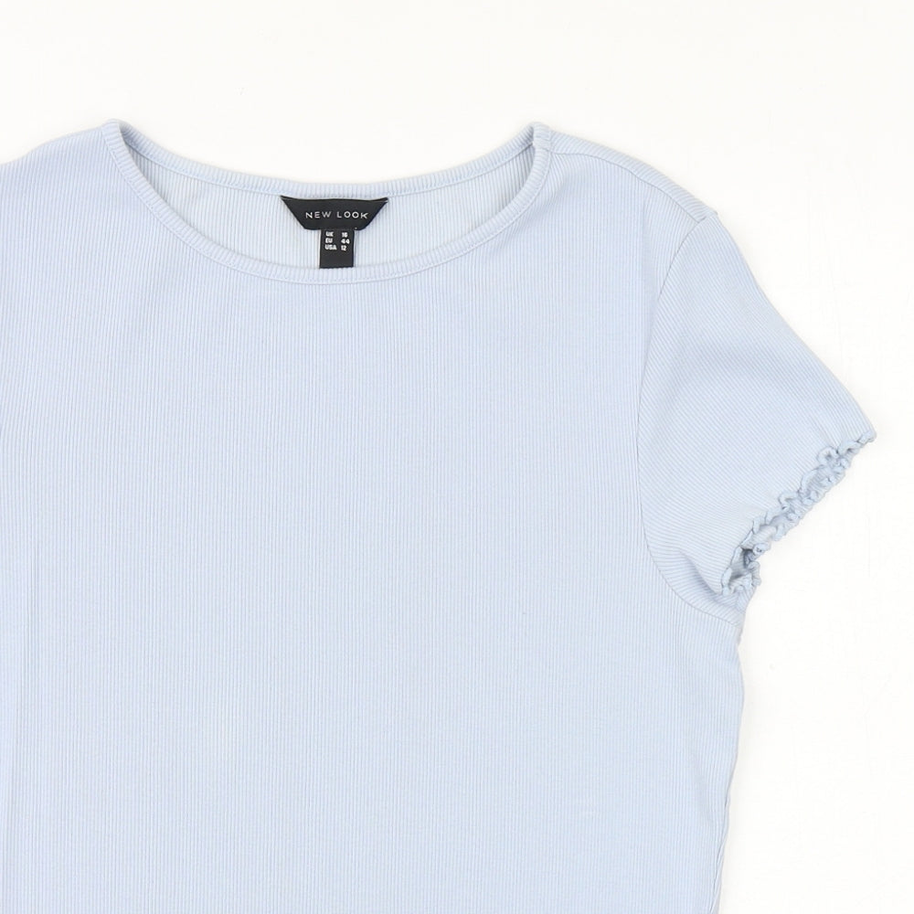 Womens Blue Cotton Basic T-Shirt Size 16 Boat Neck - Ribbed
