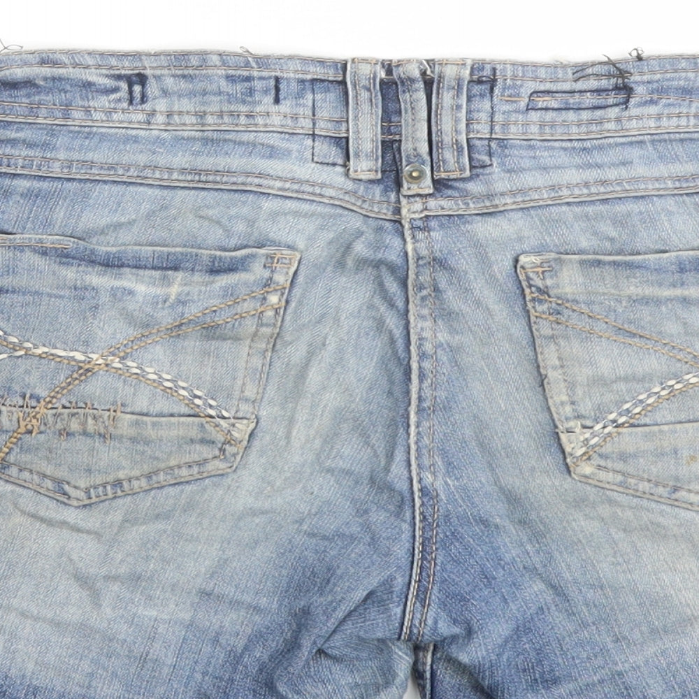 Womens Blue Cotton Hot Pants Shorts Size 10 L7 in Regular Button - Distressed