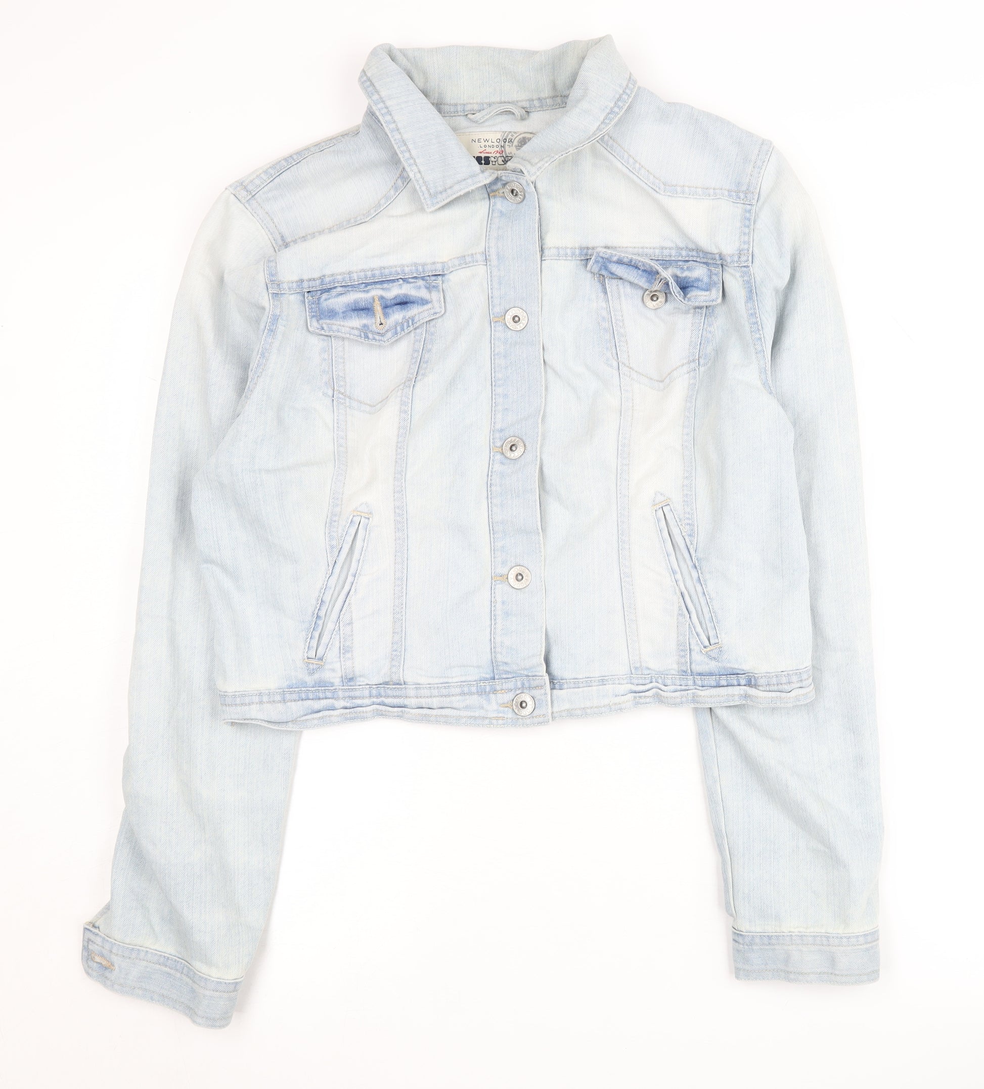 Elevate your casual wear with this stylish New Look denim jacket, perfect for spring and summer days. Crafted from a comfortable blend of 80% cotton and 20% polyester, this blue cropped jacket offers a classic look with its collared design and button accents. With a regular fit, it's ideal for women's casual outings, providing a relaxed yet chic appearance. The long sleeves and pockets add functionality, ensuring a practical choice for everyday use. While it's in excellent condition, showing only light wear, it remains a versatile piece for any wardrobe. Ideal for those seeking a classic denim aesthetic, this jacket guarantees both style and comfort. Machine washable and easy to maintain, this jacket is a must-have casual staple. Grab it now and enjoy a timeless addition to your ensemble, promising a fresh and trendy look season after season.