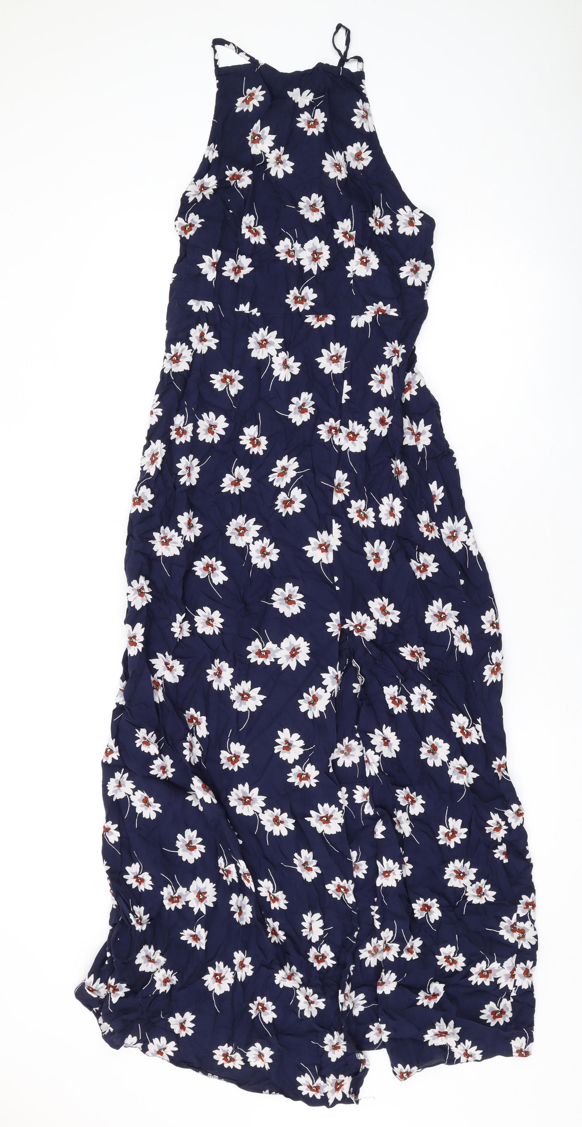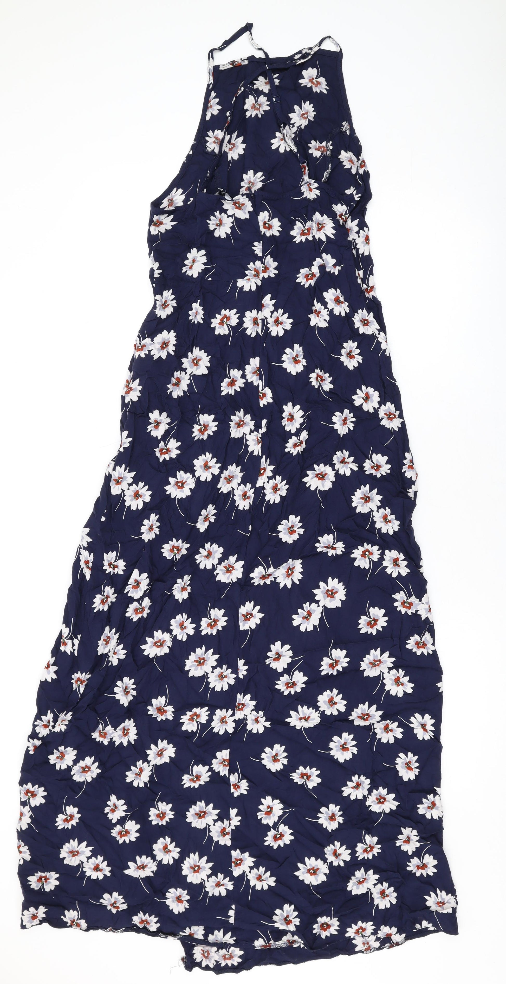 Womens Blue Floral Polyester Maxi Size 12 Halter Pullover