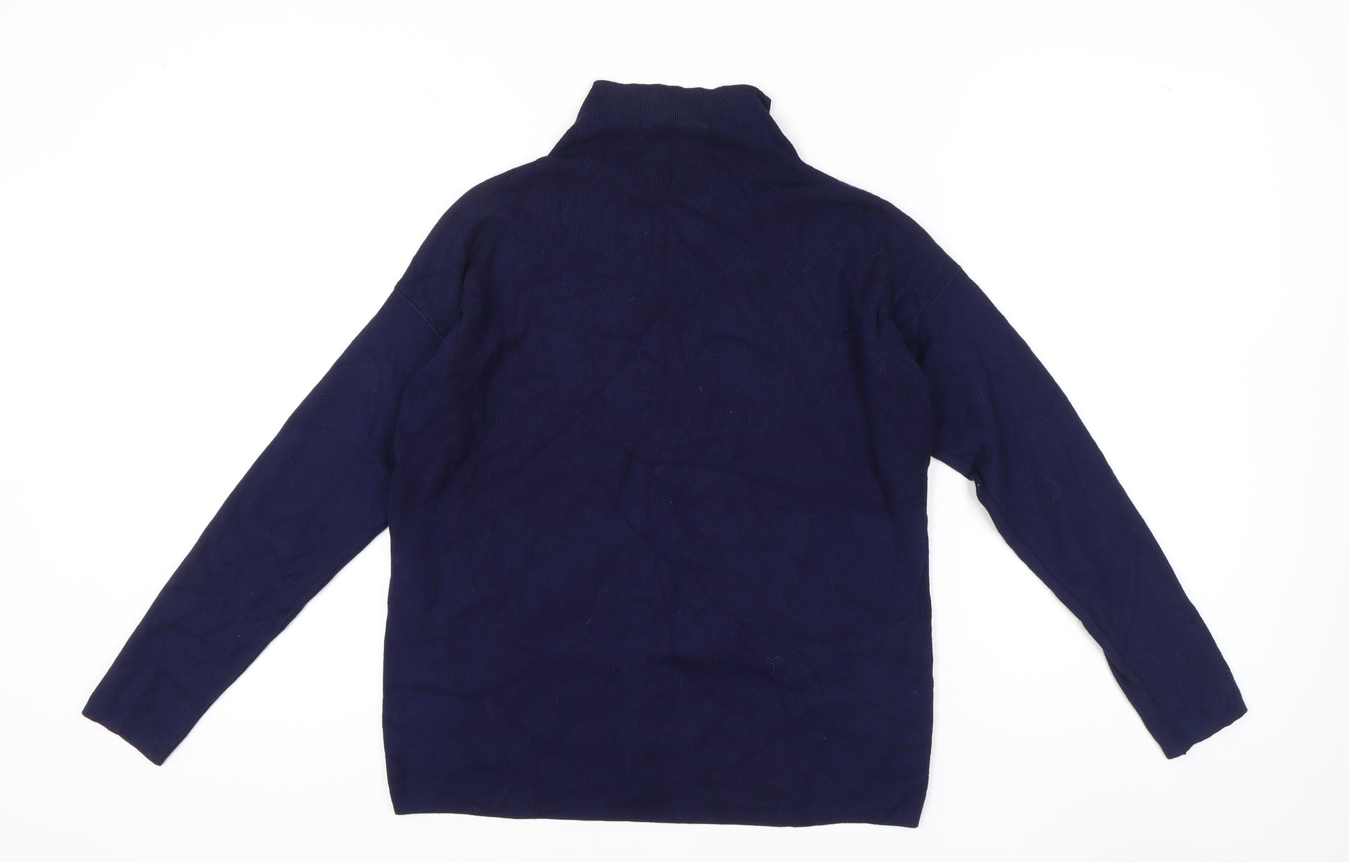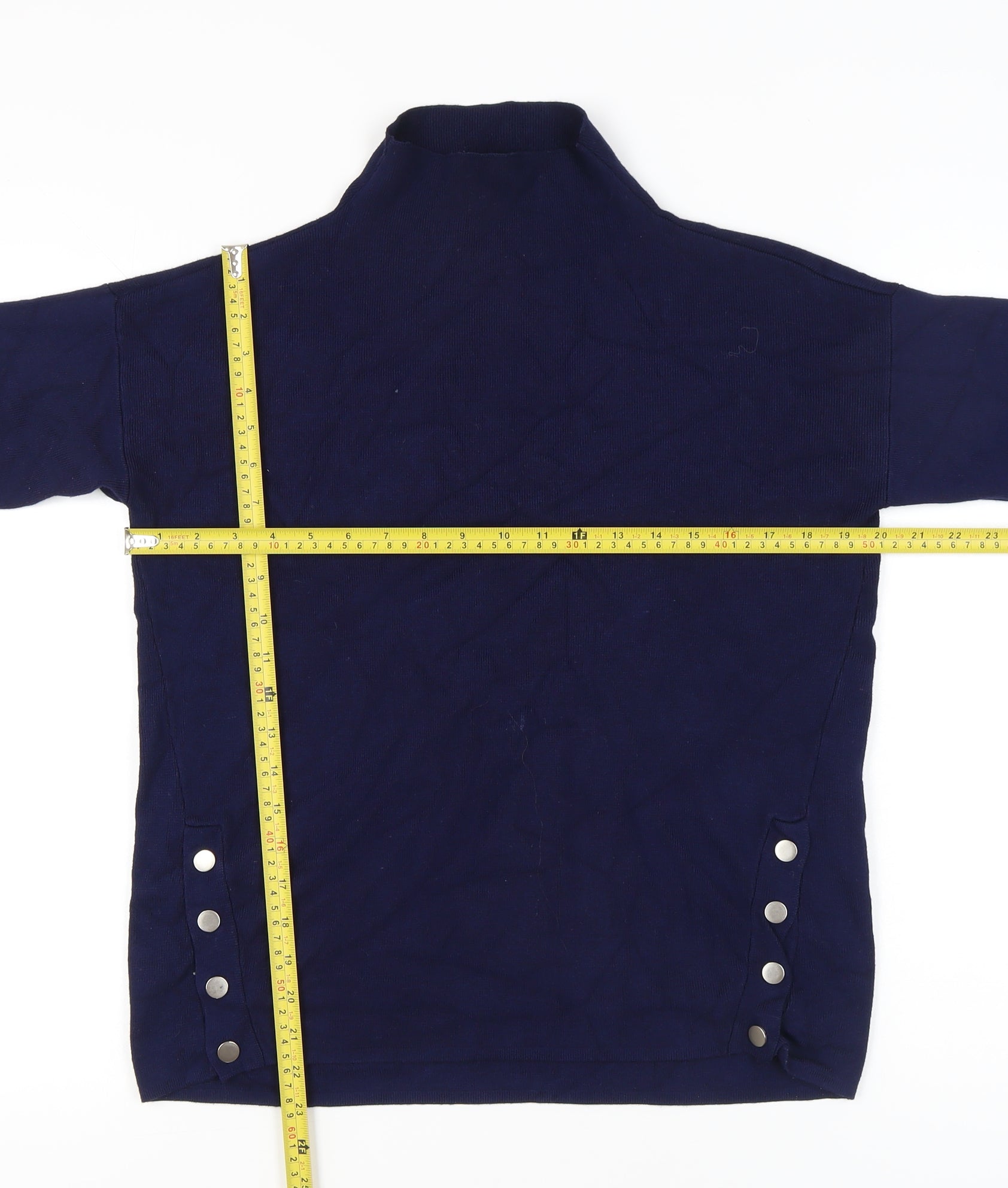 Womens Blue Mock Neck Pullover Jumper Size S Long Sleeve
