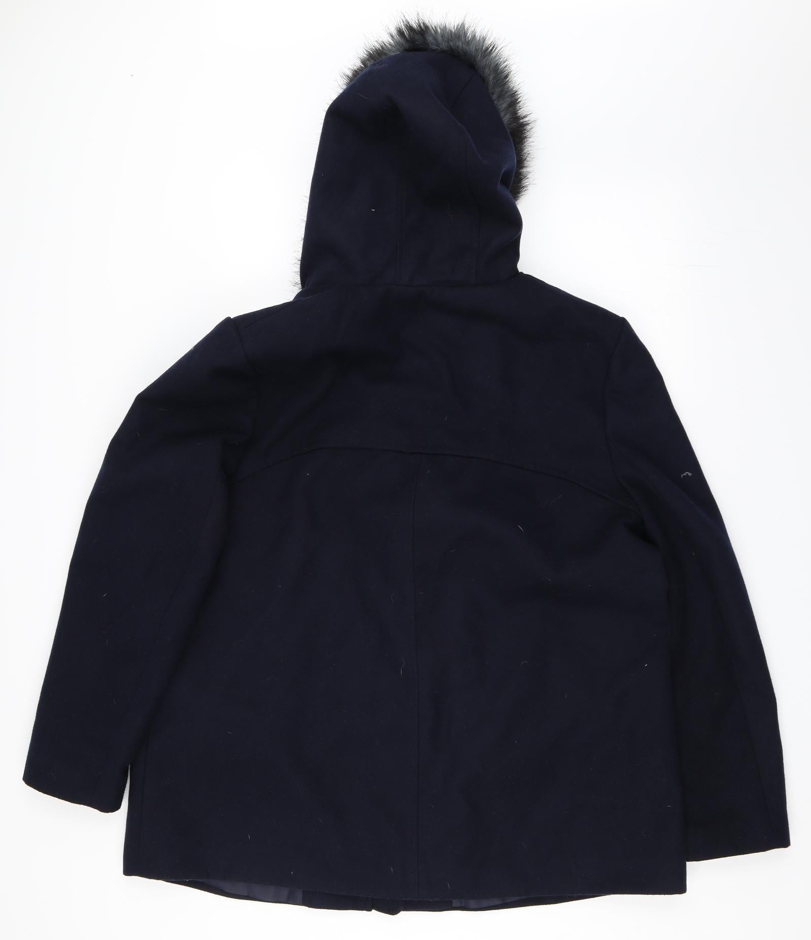 New Look Women’s Beige Hooded Duffle Coat Faux Fur Trim UK 18