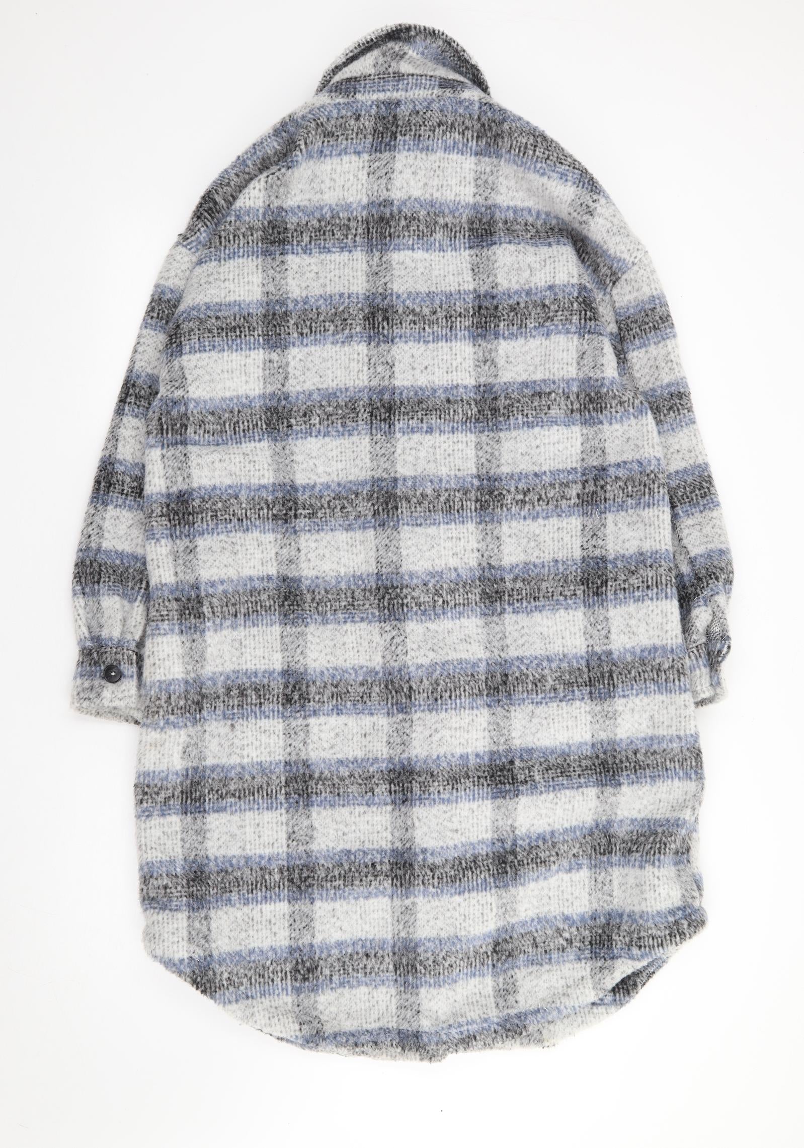 Womens Blue Plaid Jacket Coat Size 12 Button - Shacket