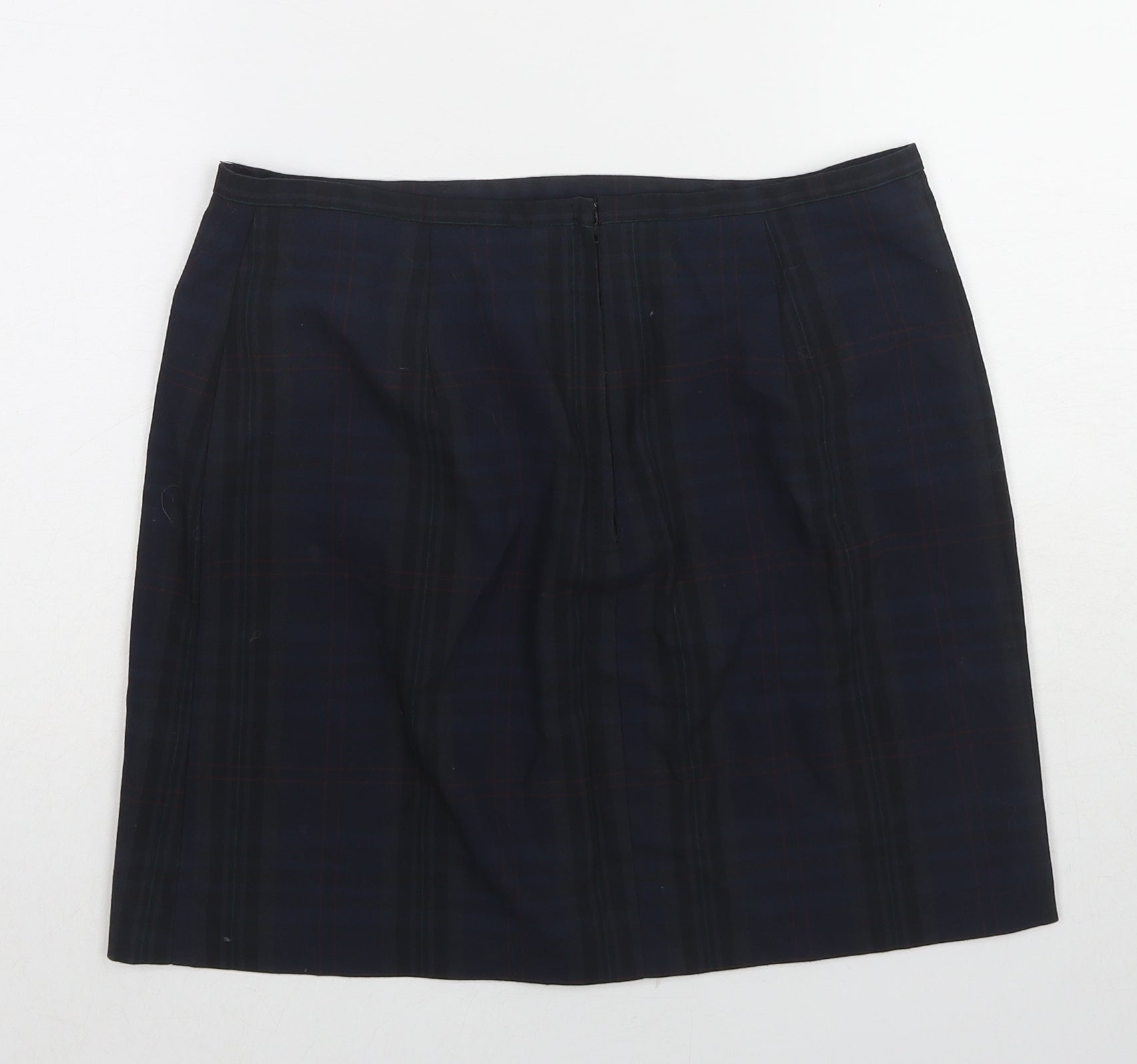 Womens Blue Plaid Polyester A-Line Skirt Size 10 Zip
