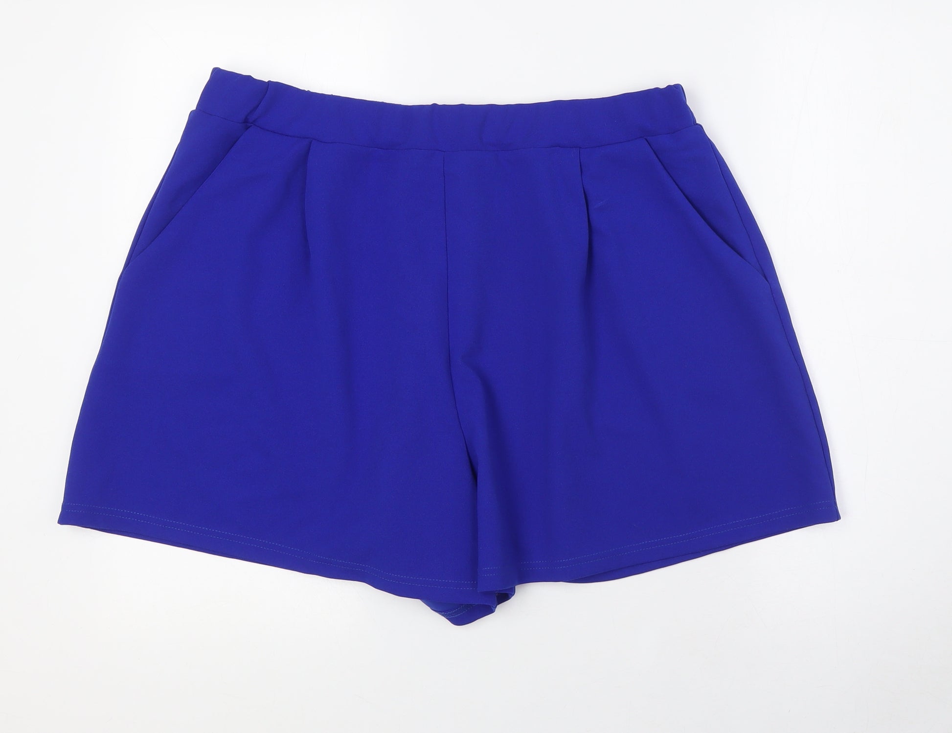 Womens Blue Polyester Basic Shorts Size 22 L3 in Regular - Elasticated Waist