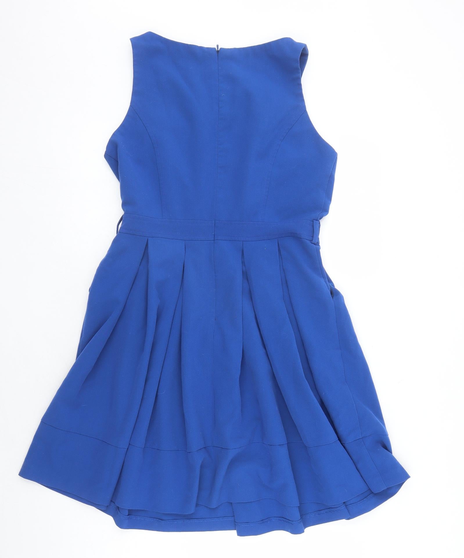 Womens Blue Polyester Fit & Flare Size 14 Round Neck Zip