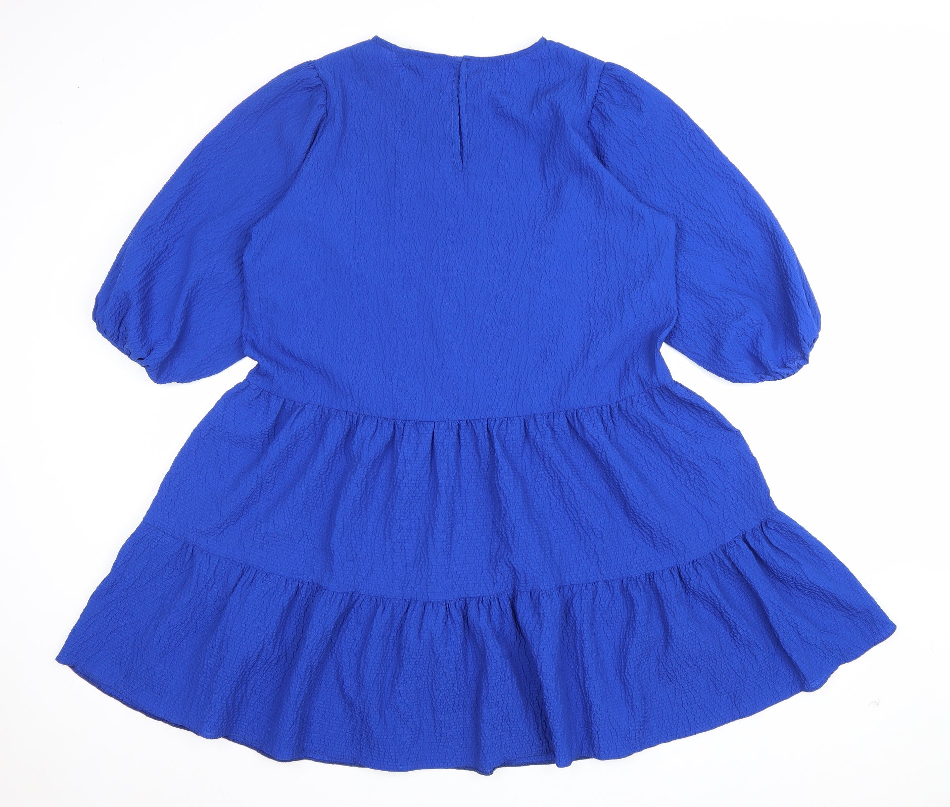 New Look Womens Blue Floral Polyester Shift Size 16 Square Neck Button