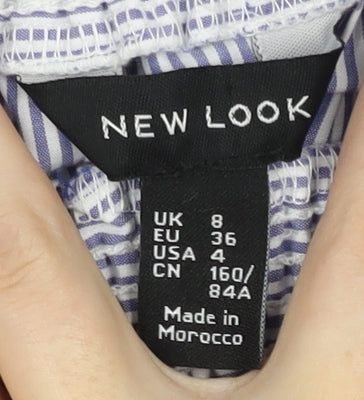 Elevate your casual wardrobe with this New Look Women's Blue Striped Off the Shoulder Blouse. Designed with a charming off-the-shoulder neckline and tie accents on the sleeves, this blouse brings a touch of elegance to everyday wear. Crafted from a soft blend of 60% polyester and 40% cotton, it's perfect for all-day comfort. The blue striped pattern adds a classic yet fashionable appeal, making it a versatile piece suitable for various casual occasions. Available in size 8 and designed for regular fit, this blouse ensures both style and comfort. Paired with jeans or a skirt, it's the ideal garment for outings or relaxed gatherings. With its excellent condition and no visible signs of wear, this piece is ready to enhance your style effortlessly at an attractive price.