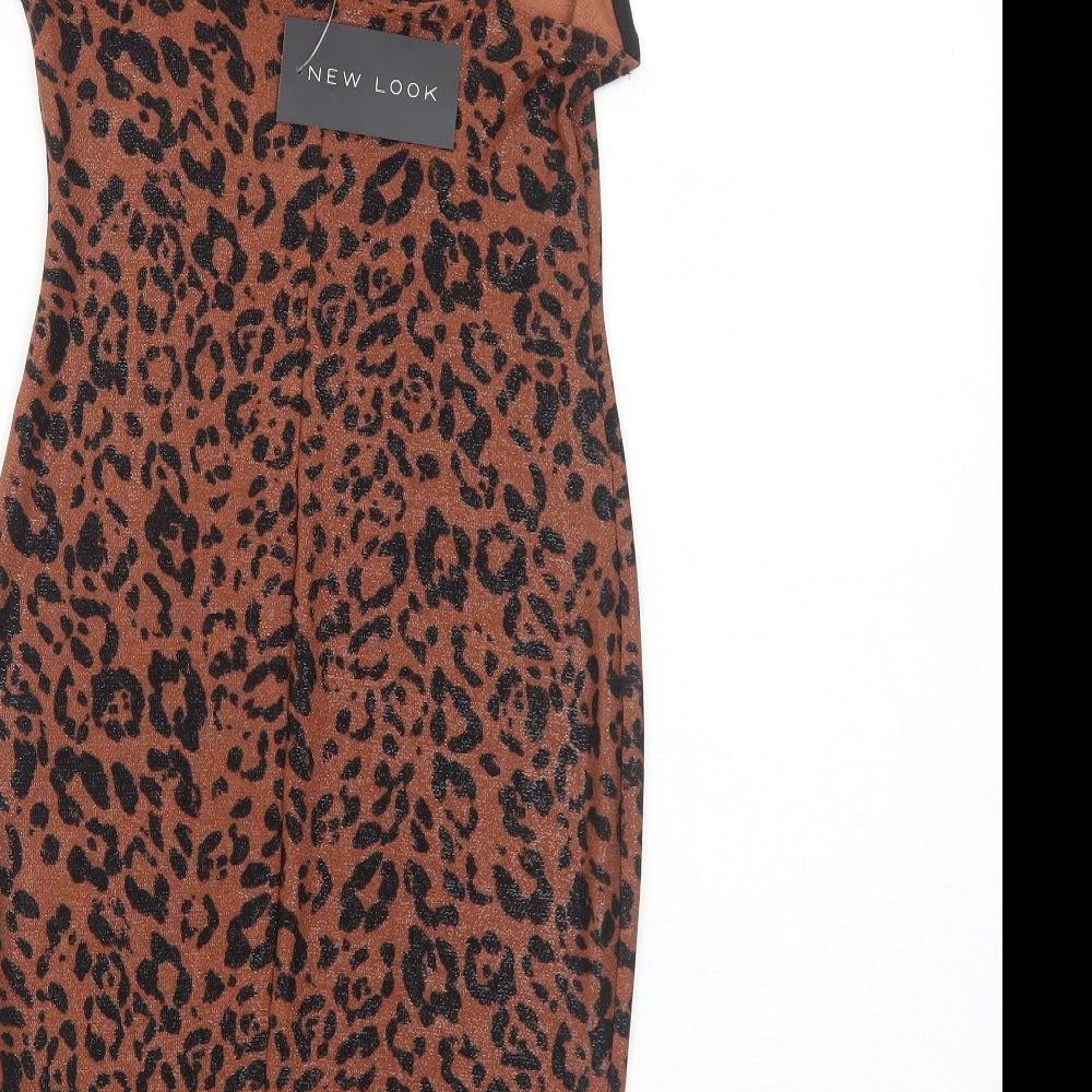 Womens Brown Animal Print Polyester Mini Size 8 Square Neck Pullover - Leopard Print