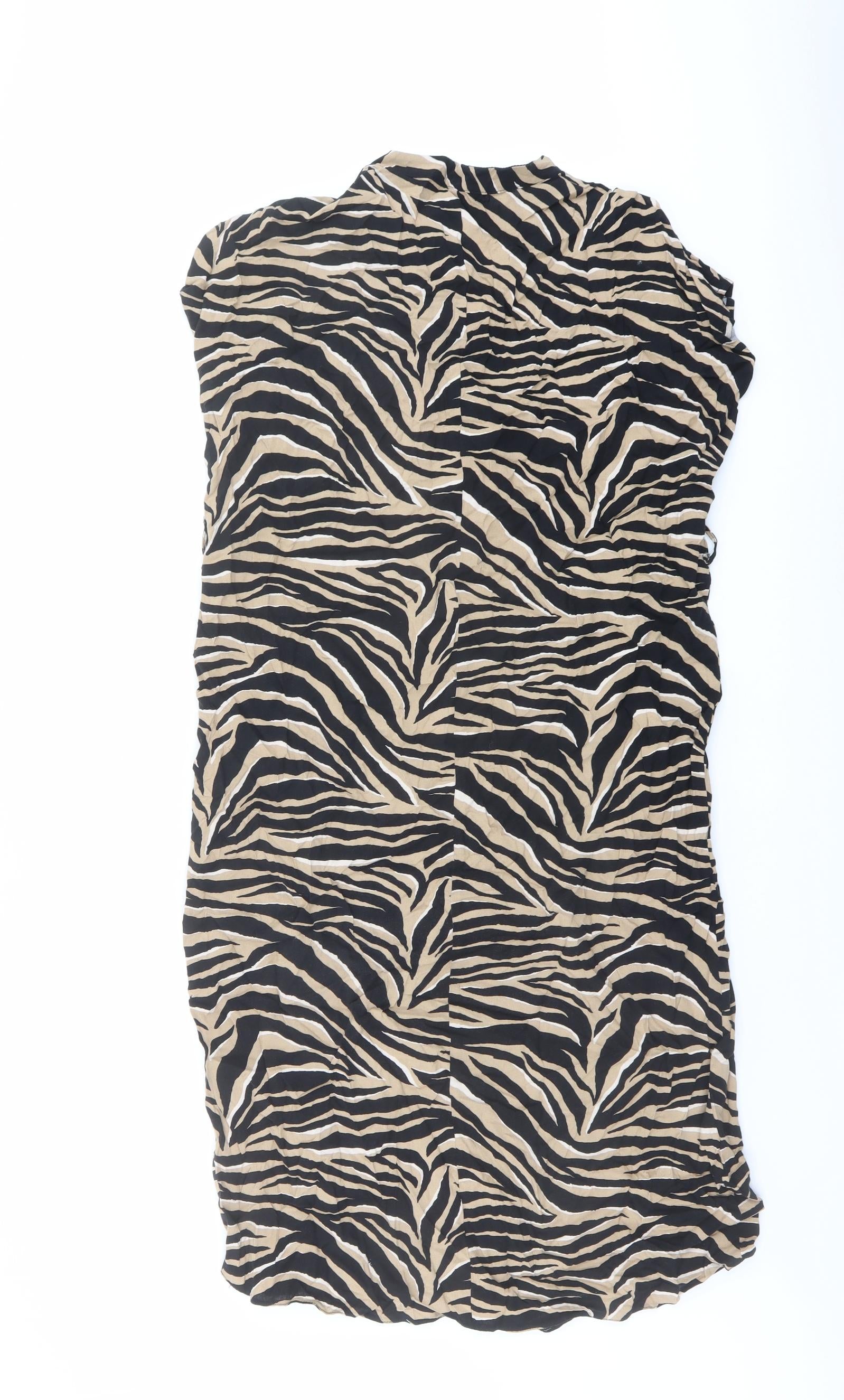 Womens Brown Animal Print Viscose A-Line Size 12 V-Neck Pullover - Tiger pattern