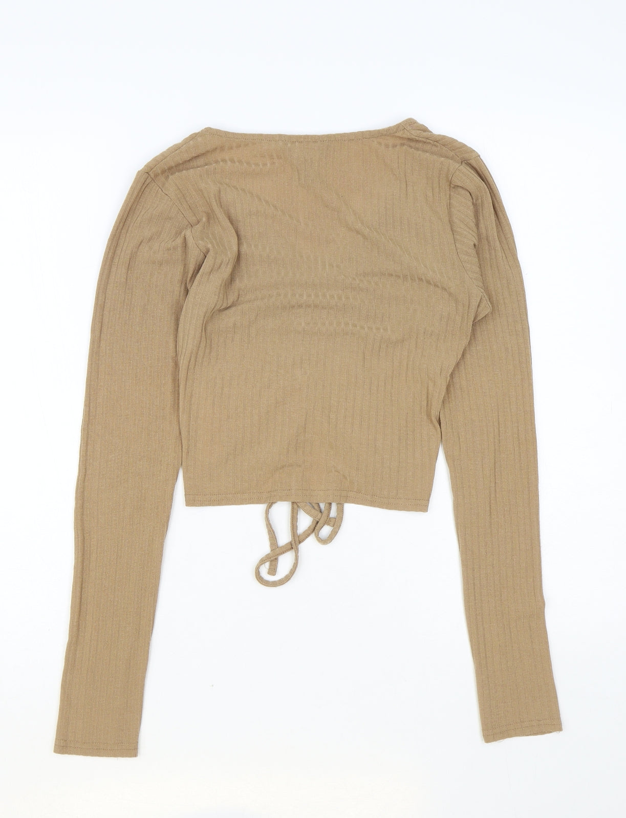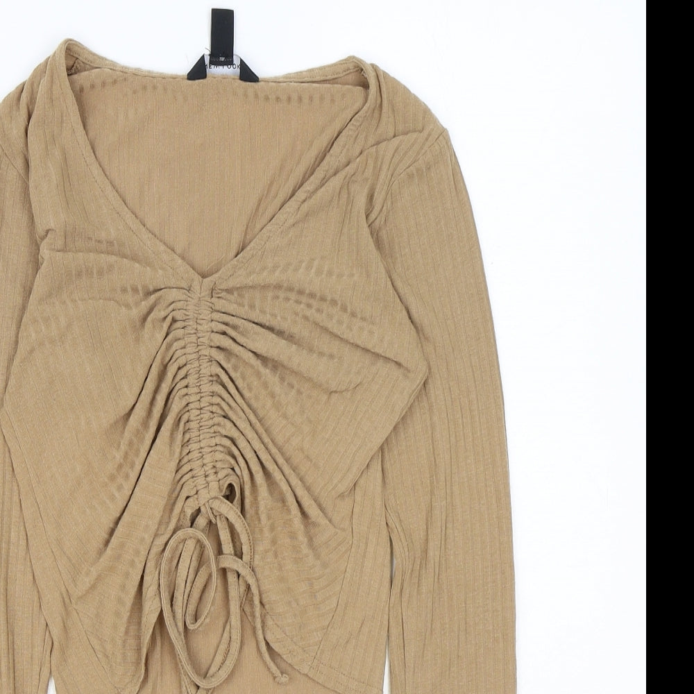 Womens Brown Cotton Basic T-Shirt Size 10 V-Neck