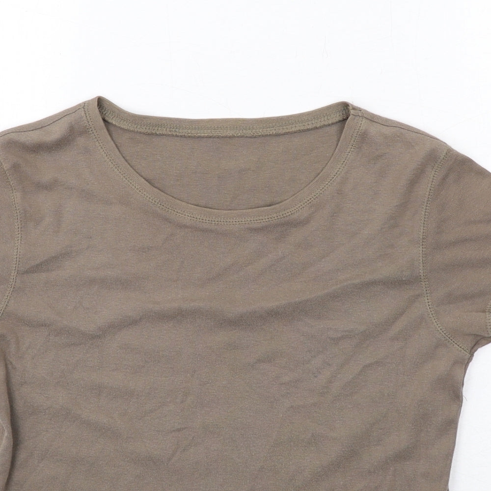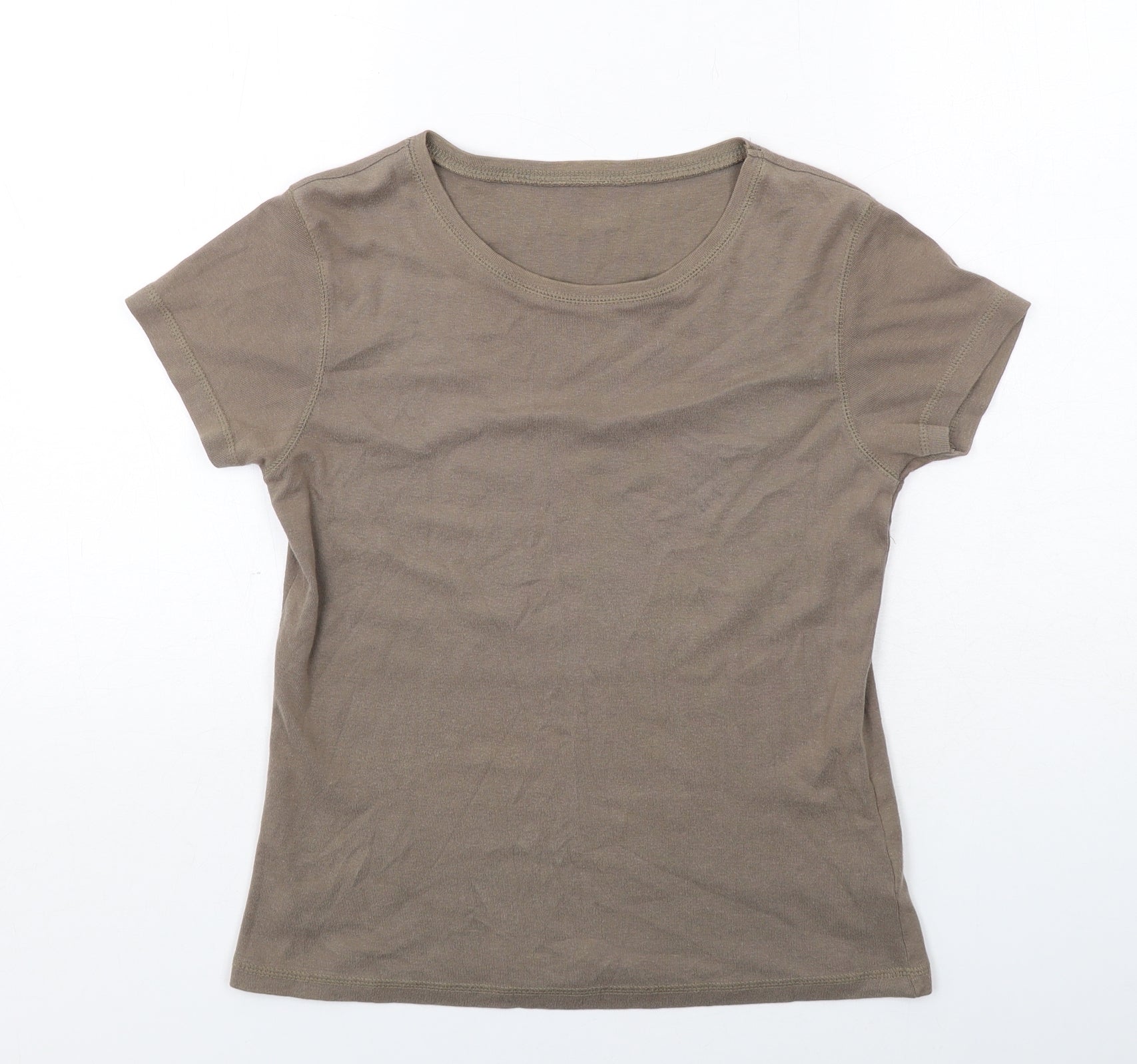 Womens Brown Cotton Basic T-Shirt Size 14 Boat Neck