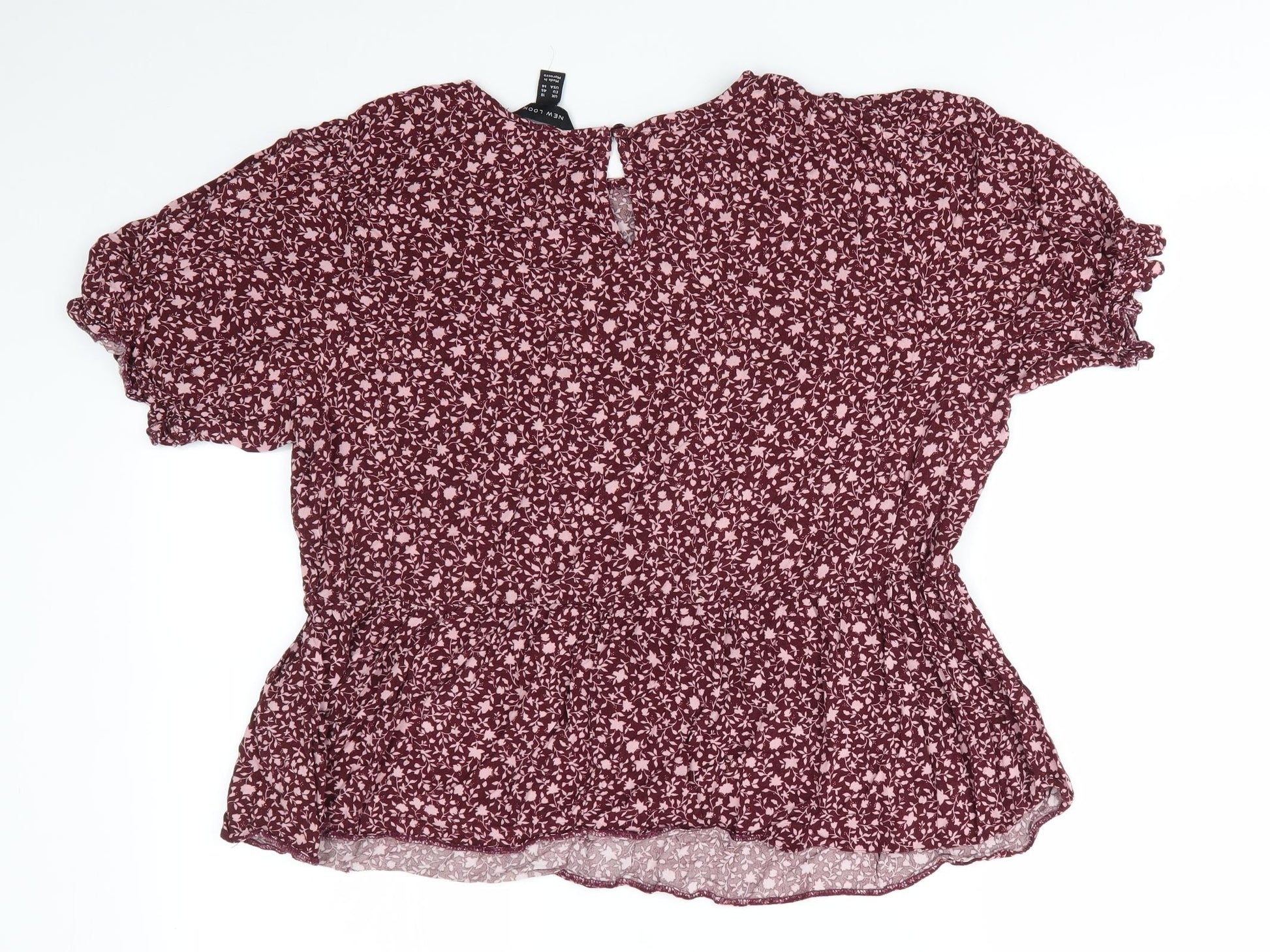 Womens Brown Floral Viscose Basic Blouse Size 18 Round Neck - Pink flowers Elasticated Cuffs