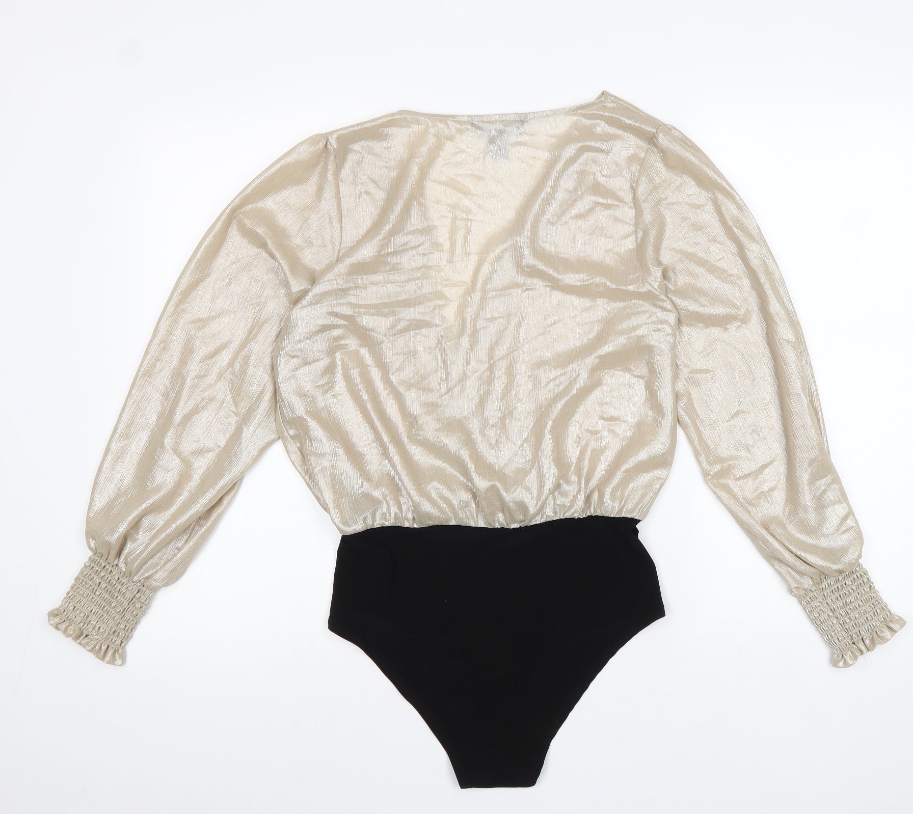 Womens Gold Polyester Bodysuit One-Piece Size 10 Snap