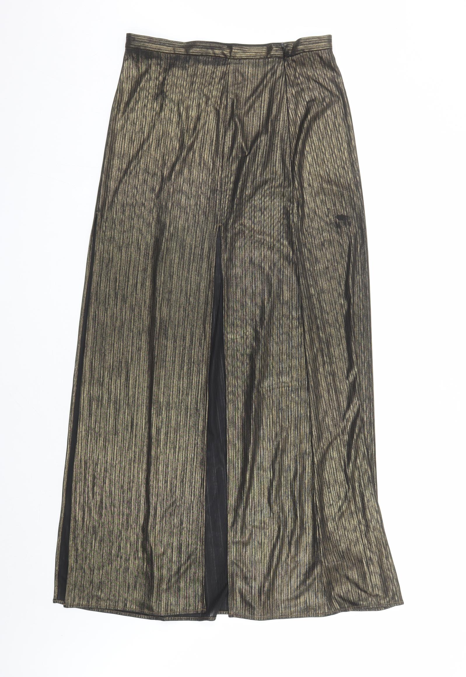 Womens Gold Polyester Maxi Skirt Size 12 Zip - Side Split Detail