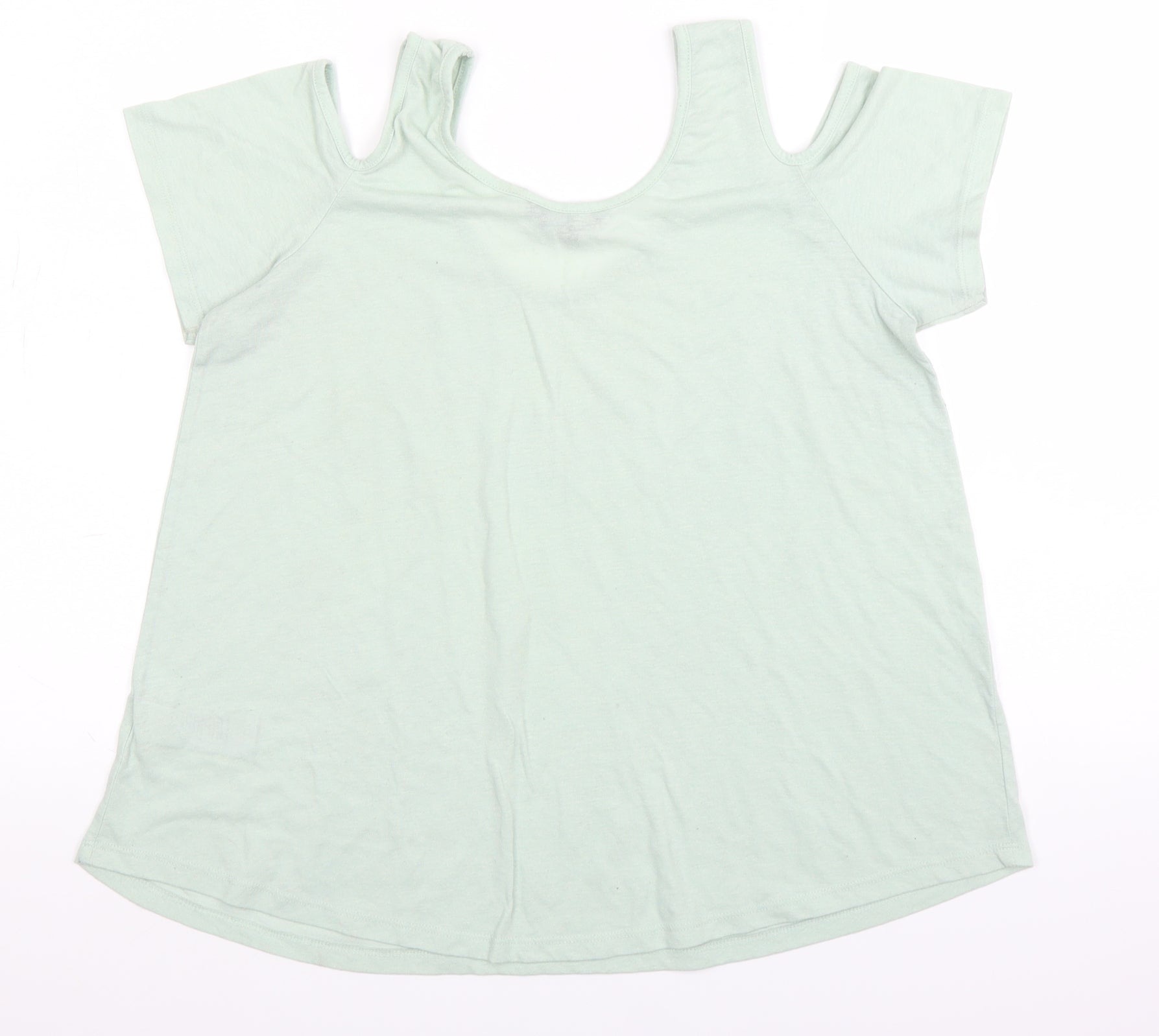 Womens Green Basic T-Shirt Size 12 - Shoulder cut out