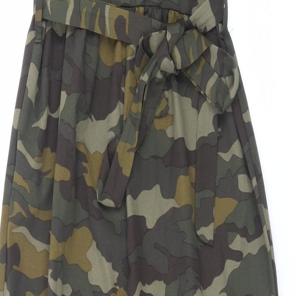 Womens Green Camouflage Polyester Jumpsuit One-Piece Size 12 Button